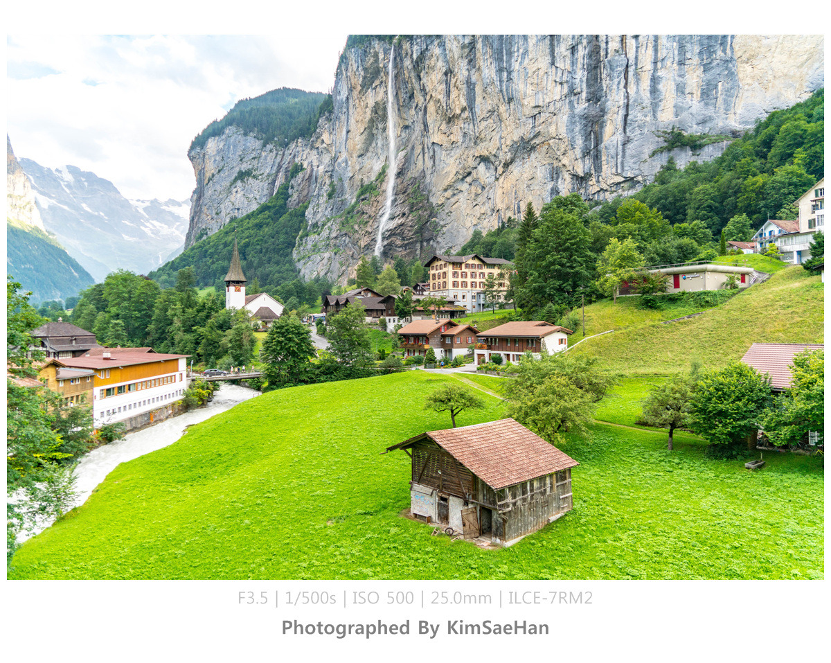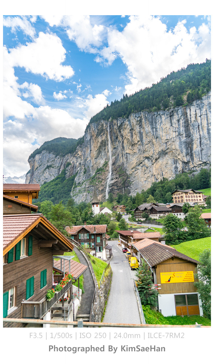 보통 여행지를 떠나면 미련과 아쉬움이 남지만, 뮈렌만큼은 그런 느낌 없이 한번 와봤다란 생각만 가진 체 다시 라우터브루넨으로 갔다. 벵엔으로 가는 길에 폭포가 보였는데, 여기에서 유명한 폭포라고 했다. 바로 앞까지 올라갈 수 있으며, 폭포 뒤에서 볼 수 있다고 했는데 그게 다라고 했다. 그래서 기차 타고 올라가는 길에 본 것이 전부였다.