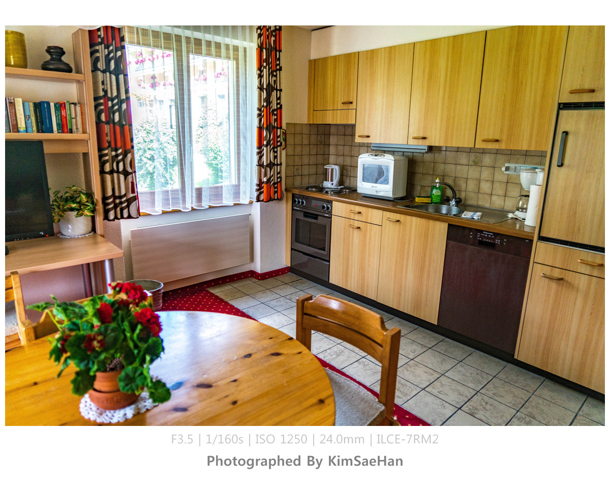 방을 보여주는데, 둘이 쓰기에는 아주 좋은 곳이었다. 여태 호텔에서만 살았는데 여기는 요리를 할 수 있는 공간까지 있는 것이었다. 와이프와 나는 숙소가 너무 좋아서, 여기에서 조금 더 머물고 싶다고 얘기를 했다. 그러나 내일 인터라켄으로 넘어가면 그다음 날에 공항으로 가야 했기 때문에 어찌할 수가 없었다.
