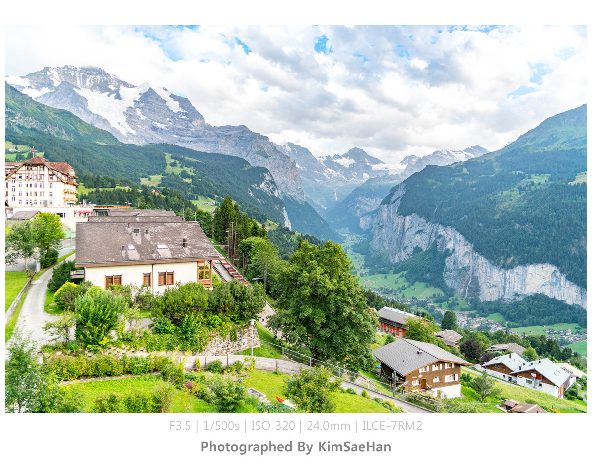 멋진 풍경을 바라보며 한참 가다 보니, 저 멀리 자리 잡은 벵엔이 보였다. 내가 생각했던 모습과 많이 달랐다. 난 넓은 들판에 듬성듬성 있는 집들을 상상했다. 왜냐면 작은 마을이라고 했기 때문에, 그린델발트보다도 작은 마을이라 생각했다. 그러나 막상 어느 정도 규모가 있는 모습을 보고 약간 아쉬워했었다. 이유는 딱 하나였다. 그린델발트에서 한 번밖에 못 봤던 은하수를 다시 한번 감상하고 사진으로 담고 싶었기 때문이다. 밤에 불빛이 없어야 하는데, 이 정도의 마을이면 역시나 쉽지 않겠다란 생각이 들어서였다.