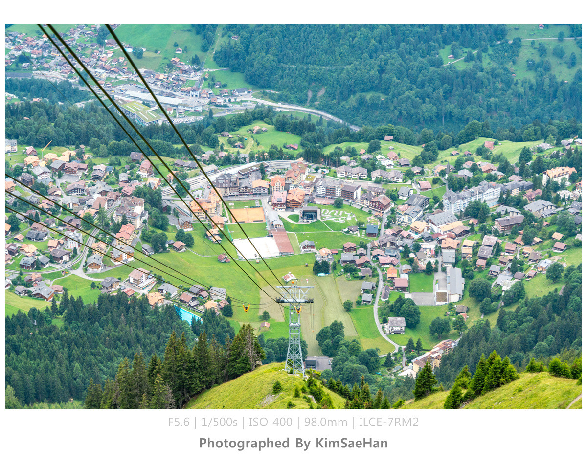 사람이 없으니 상당히 조용한 마을이었다. 한적한 거리를 걸으며, 숙소 앞에 있는 교회에서 내일 아침에 한복 입고 촬영도 하기로 했다. 역에서 숙소로 오는 길에 봤던 케이블카 역에 도착했다. 때마침 출발시간과 딱 맞아서 기다리는 시간 없이 바로 타고 뭰리헨으로 올라갈 수 있었다.