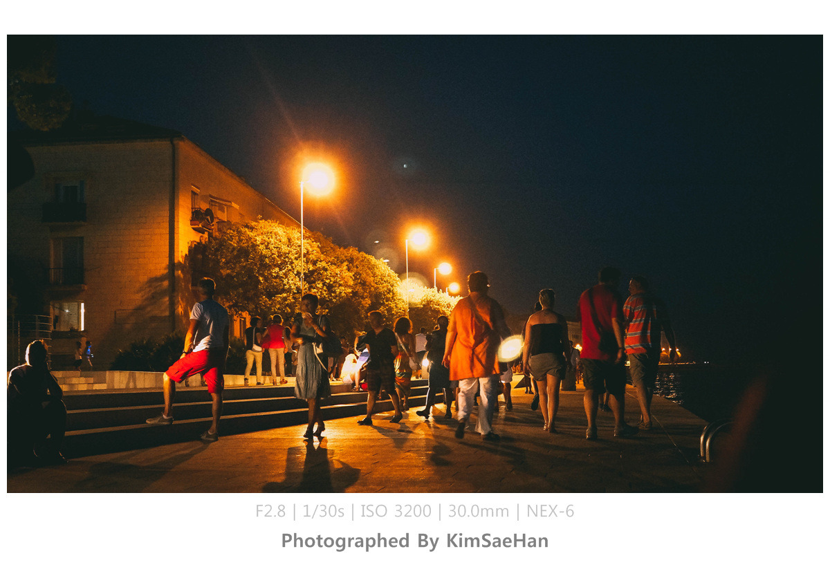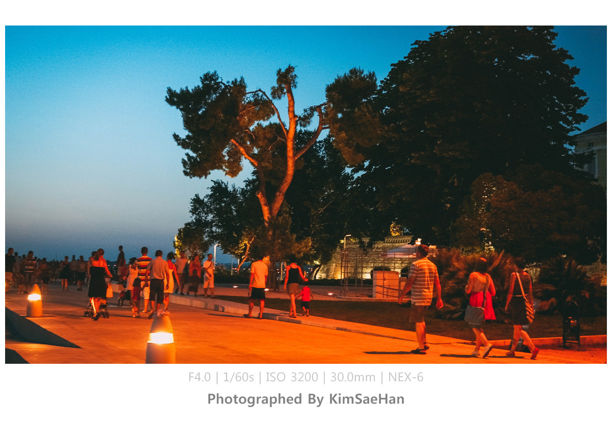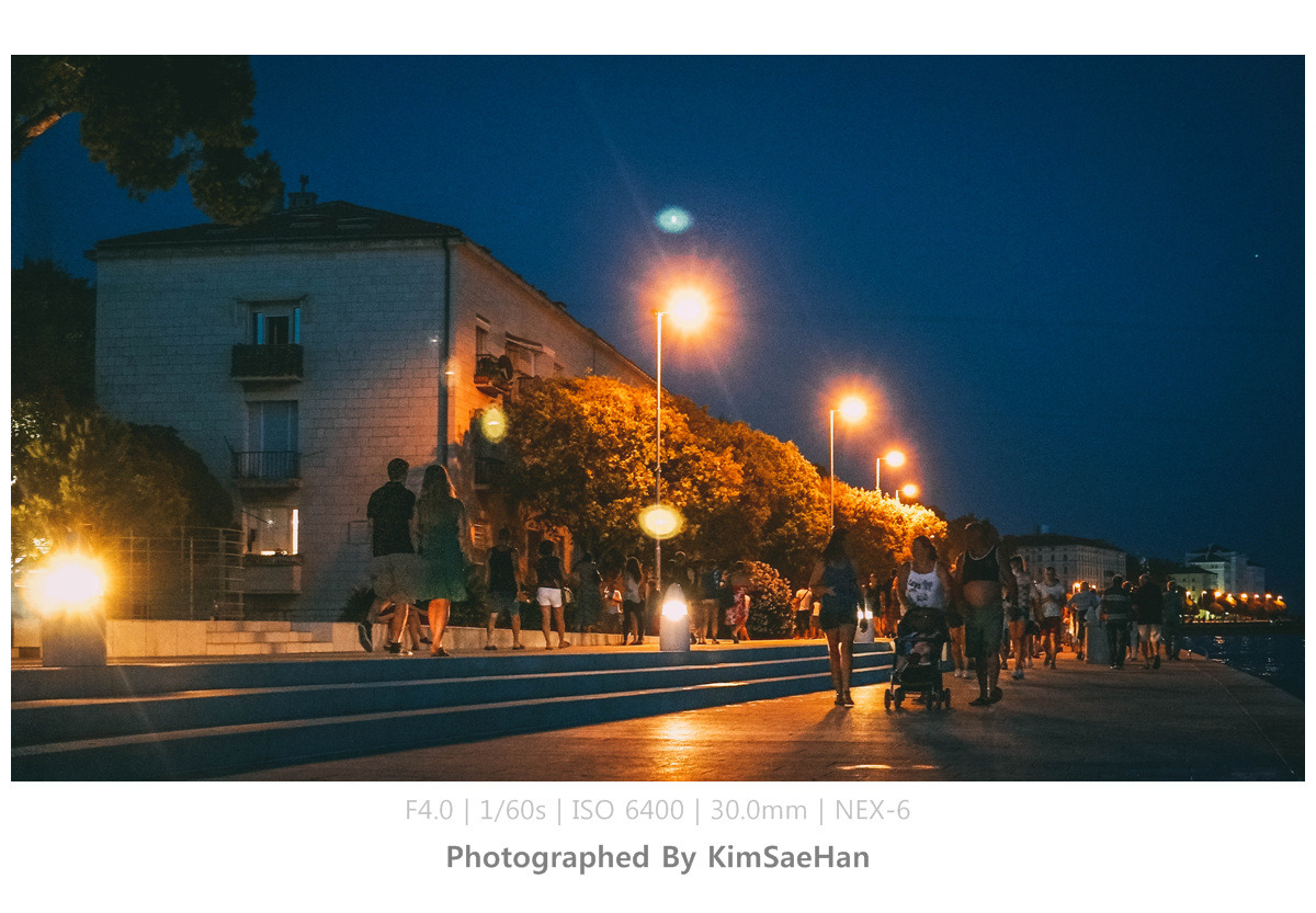 태양의 인사를 구경하고, 자다르의 야경을 감상하기로 했다. 어디 높은 곳으로 가서 볼 수 있는 곳이 없는 것 같아서 천천히 도심 속을 거닐었다. 밤이 되니 화려해진 자다르가 무척 마음에 들었다. 마치 카니발 분위기 속에 있는 것 같았다. 이런 게 일상이라 생각하니 한편으로는 부럽기도 했다.