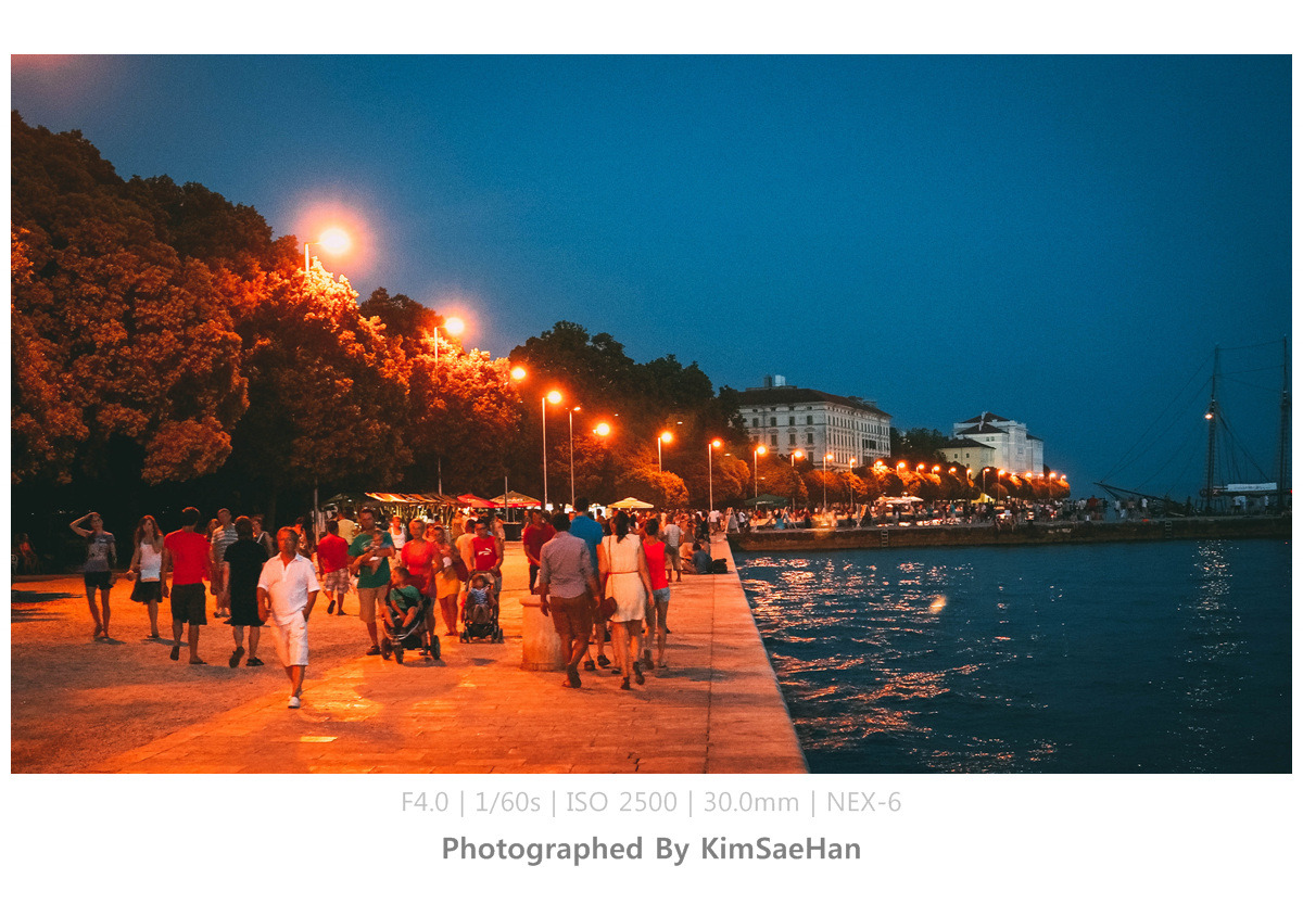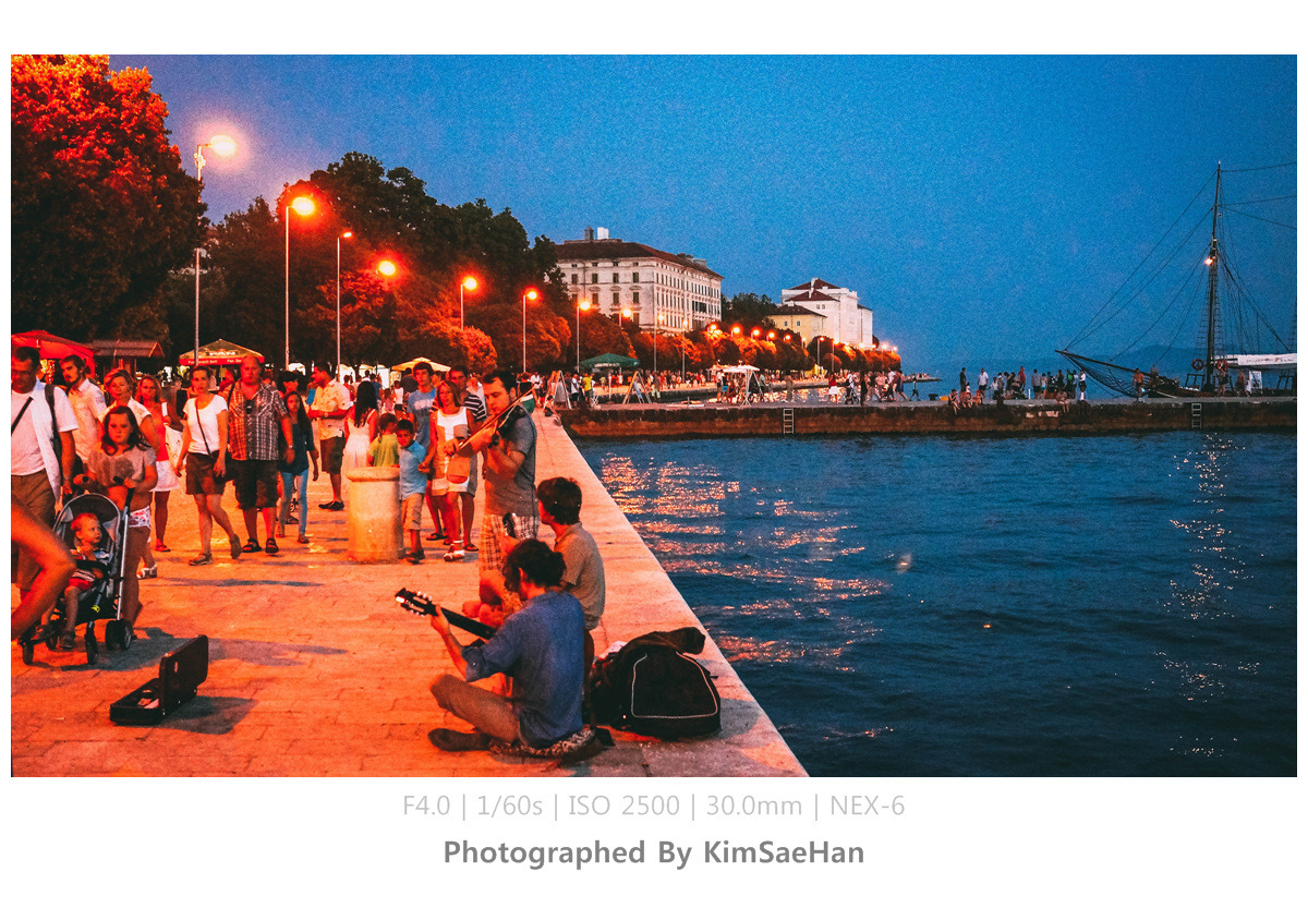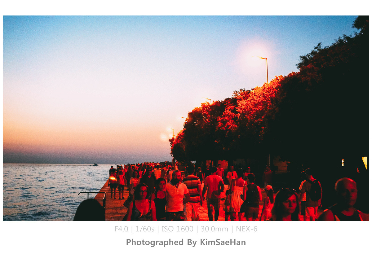 1시간 정도를 가만히 바다를 보며 오르간 소리를 듣다가, 주변을 둘러보니 어느새 사람이 북적거리기 시작했다. 낮에만 해도 사람이 없는 조용한 곳인 줄 알았는데, 어디서 이렇게 많은 여행객들이 모였는지 신기했다. 자다르뿐만 아니라 스플리트에서도 낮에는 한가하다가, 밤에는 사람들이 북적거리는 신기한 경험을 했다. 일몰이 지는 바닷가를 옆에 두고 거리에는 버스킹 하는 사람, 공연하는 사람 등 볼거리들이 많아졌다.