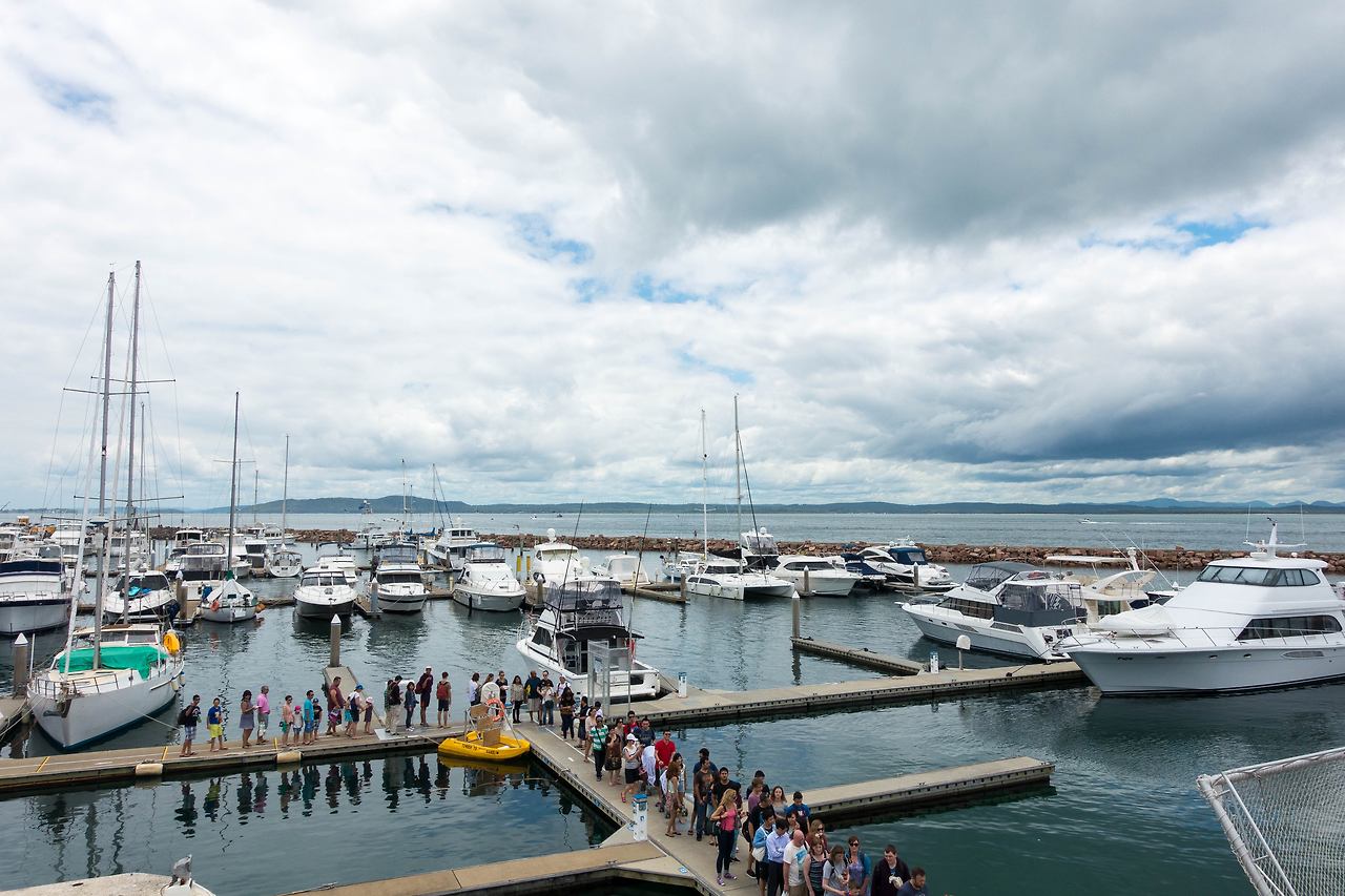 든든하게 배를 채우고 나서, 미리 밖으로 나와서 돌핀 구경하기 좋은 자리를 잡았다. 수많은 사람들이 각자의 배를 타기 위해서 길게 줄 서있었다.