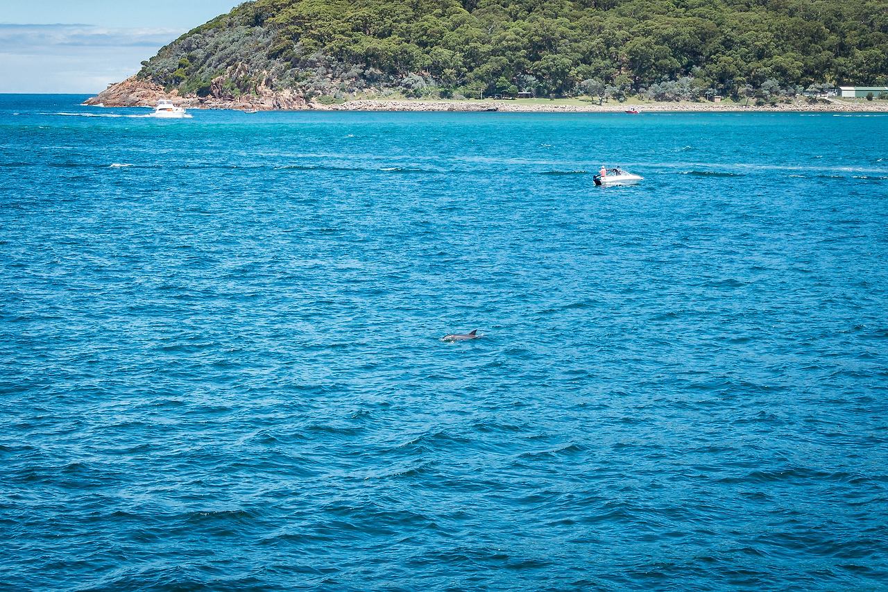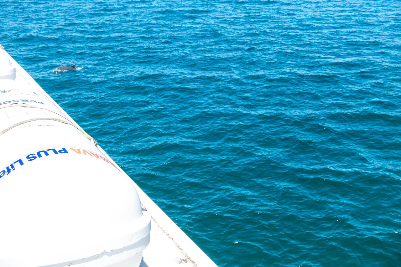 돌핀을 찾을 수 있는 지역에 도달하자, 크루즈는 멈추었고 사람들은 열심히 둘러보며 찾기 시작했다. 이내, 한 곳에서 돌핀을 외치자 사람들이 몰려가기 시작했다. 나도 빨리 쫓아가서 구경했다. 미리 자리 잡을 필요가 없었다. 언제 어디에서 나올지 몰랐기 때문에 계속 여기저기 이동해야 했다. 선장의 말로 오늘 생각보다 돌핀들이 많지 않다고 했다. 운이 좋은 날에는 무리들이 크루즈 주변에서 같이 헤엄치며 따라온다고 했는데, 오늘은 한 두 마리를 겨우 발견할 수 있었다. 아쉬웠지만, 그래도 허탕 치고 돌아가는 게 아니라서 다행이라 생각했다.