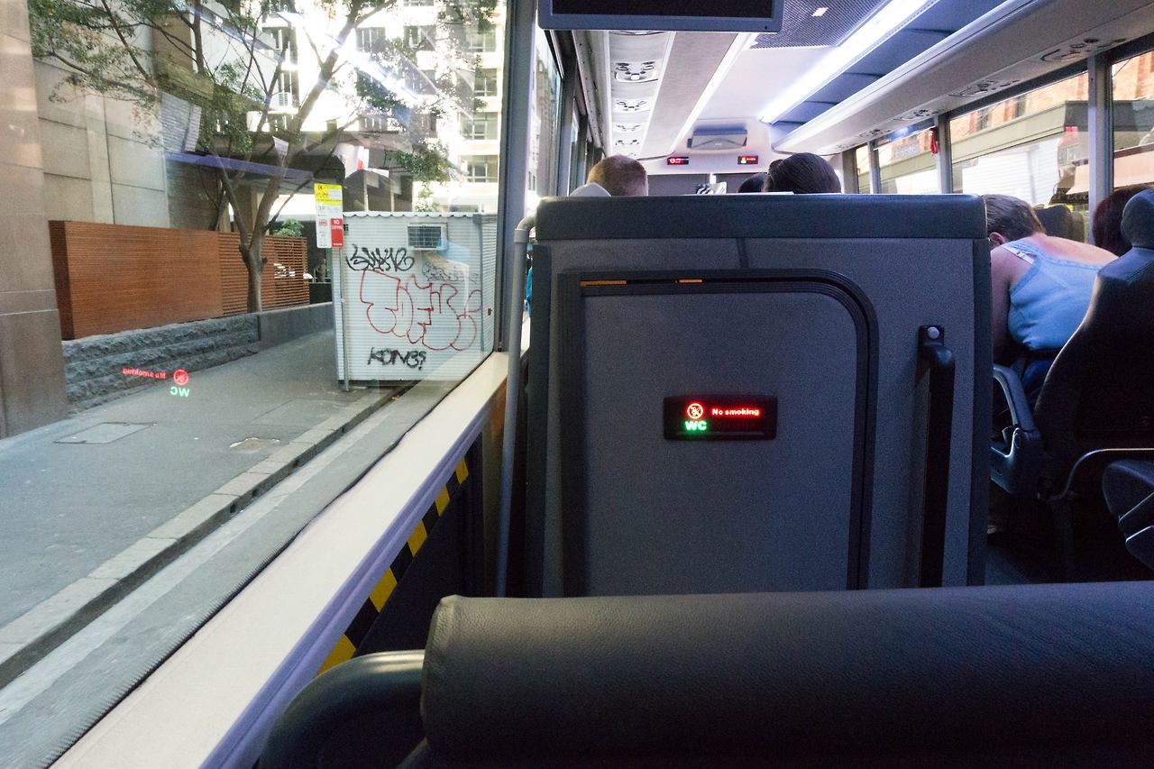 여행사에서 알려준 픽업 장소에 도착해서, 이름을 체크하고 버스에 탑승했다. 앉은자리가 화장실 뒤쪽이라 찝찝했지만 그래도 버스 안에 화장실이 있는 것은 처음 봐서 신기하게 보기도 했다. 우리나라 고속버스에도 도입이 되면 참 좋겠단 생각이 들었다.