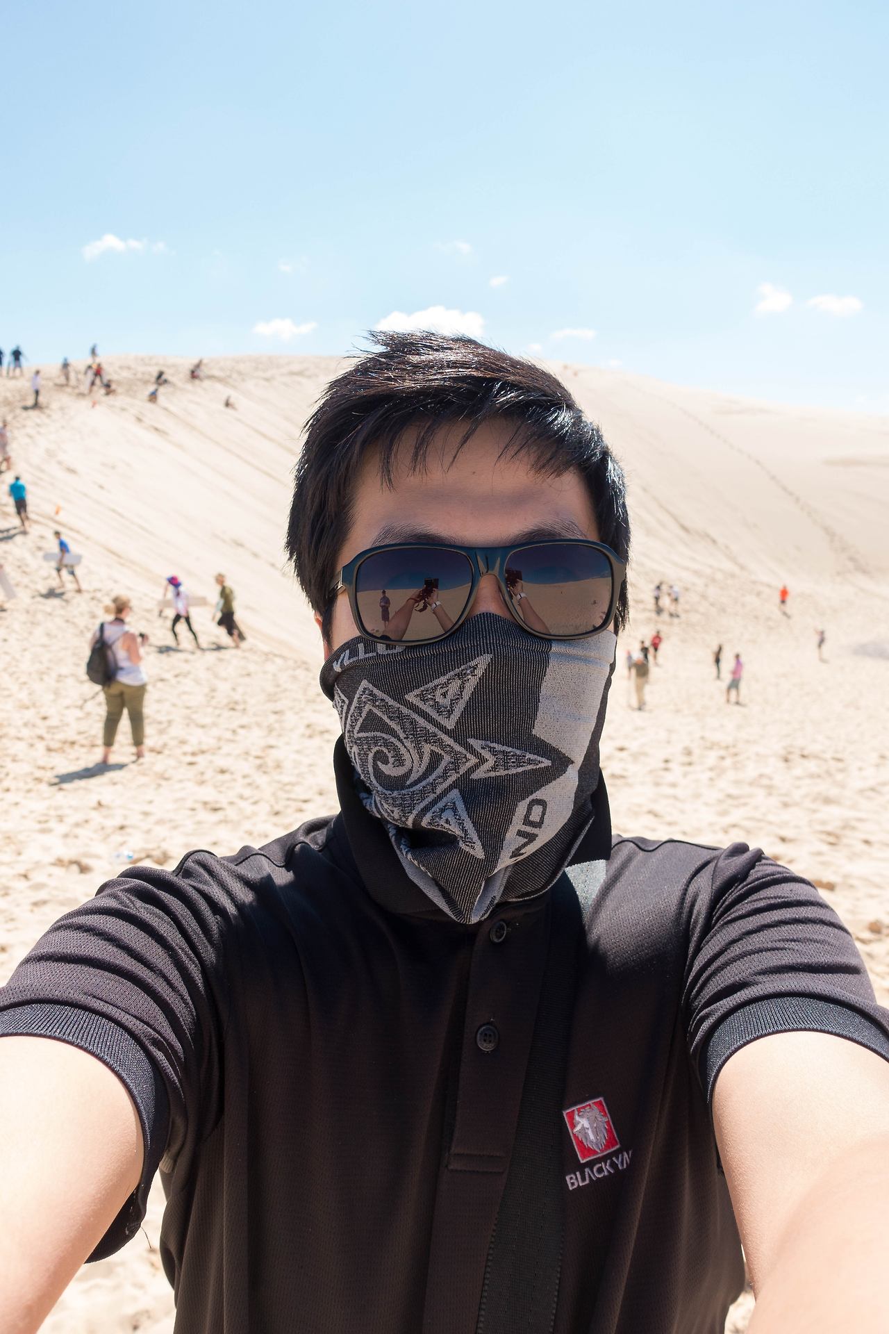 모래 보드는 처음 타보는데, 막상 언덕 위에 올라가서 밑을 바라보니 서서 탈 자신이 없었다. 앉아서 썰매처럼 타려고 했는데, 앉는 순간 그냥 미끄러지듯 모래 언덕 밑으로 내려갔다. 옷 속에 모래 범벅이 되었지만, 그 짜릿함은 정말 잊을 수가 없었다. 마지막에 착지를 잘못해서 굴렀지만 푹신한 모래 덕분에 아프기는커녕 너무 재미있었다. 다시 재정비하고 올라가는데, 힘들었다. 잠깐 내려오기 위해 높은 곳까지 올라가야 하는데, 모래라서 발이 쑥쑥 빠지기 때문에 힘은 몇 배로 더 들었다. 다섯 번 정도 타고났더니, 더 이상 탈힘이 나지 않아서 보드 들고 사진 찍고 버스 앞에서 시간이 다 되기를 기다렸다.