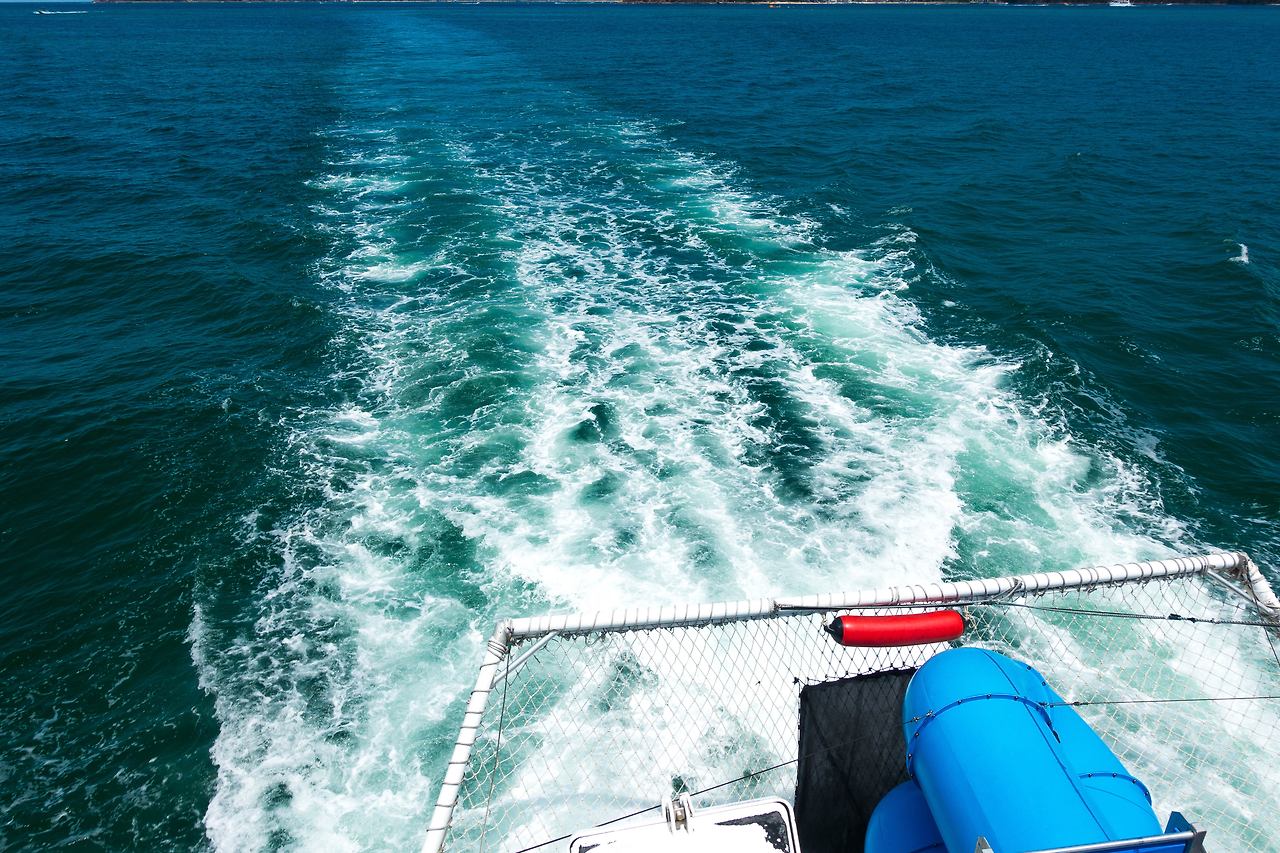 지정한 시간이 되어, 크루즈는 출발하였고 시원하게 바다를 가르며 목적지를 향해 나아갔다. 중간중간 요트에서 낚시를 즐기는 사람, 페러 세일링을 즐기는 사람들도 보였고, 해변가에서 썬텐을 즐기는 사람들도 있었다.