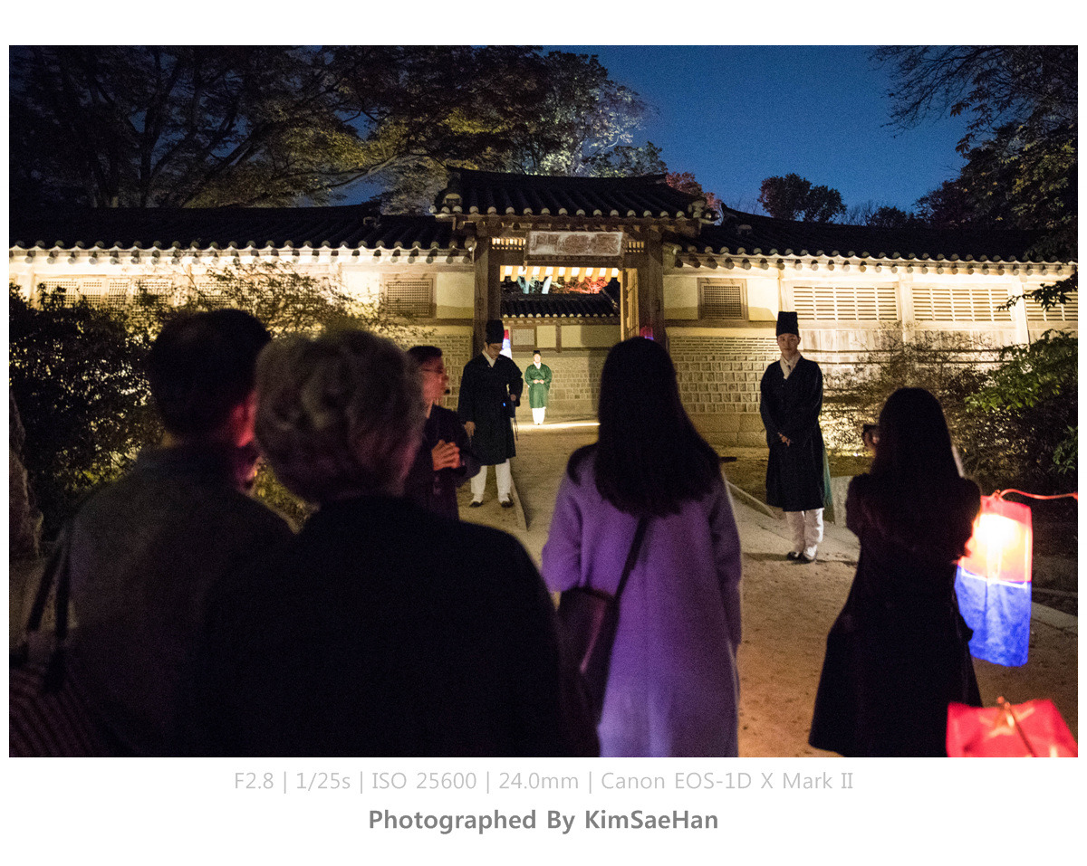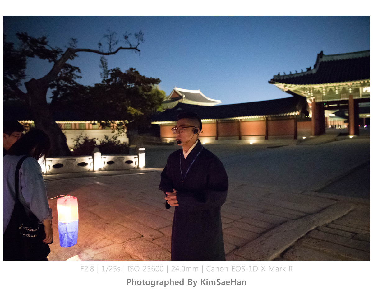 올해는 운 좋게 티켓팅을 성공해서, 창덕궁의 야경을 감상할 수 있었다. 10월 28일에 예약한 나는 돈화문 앞에 도착하니, 전통 복장을 한 수문장이 문을 지키고 있었다.