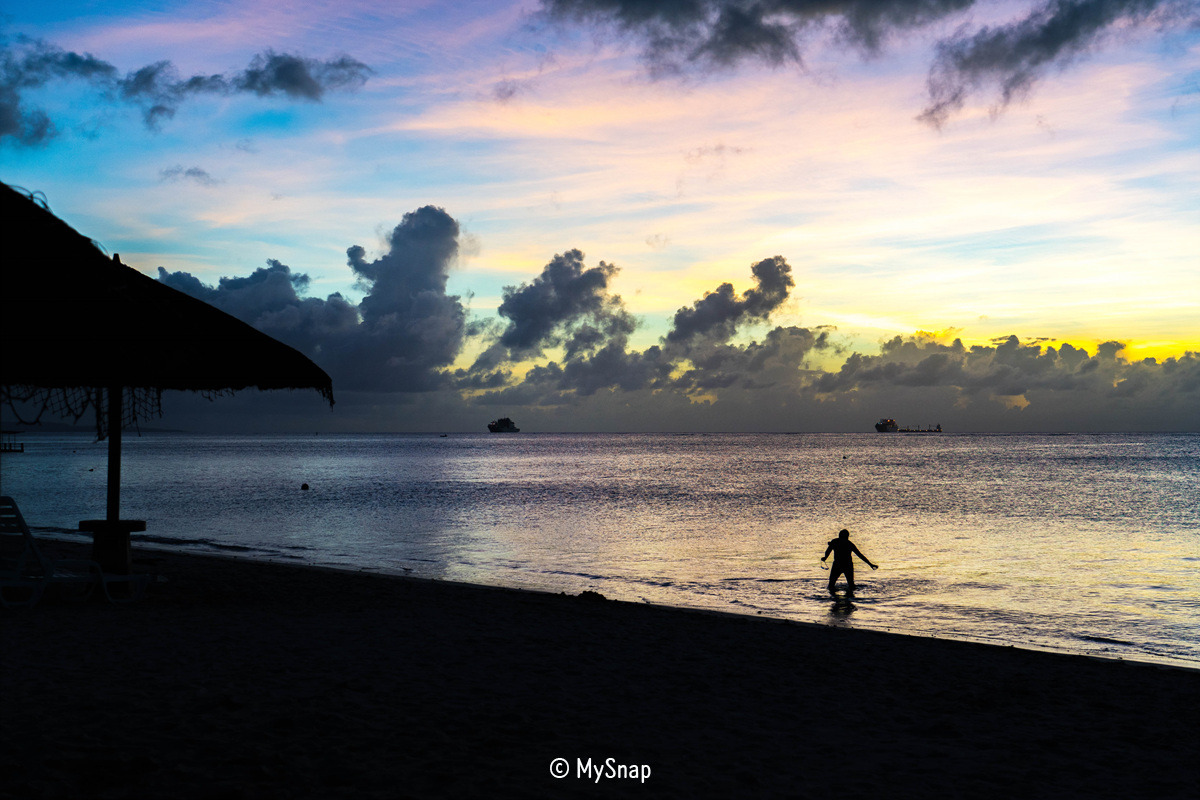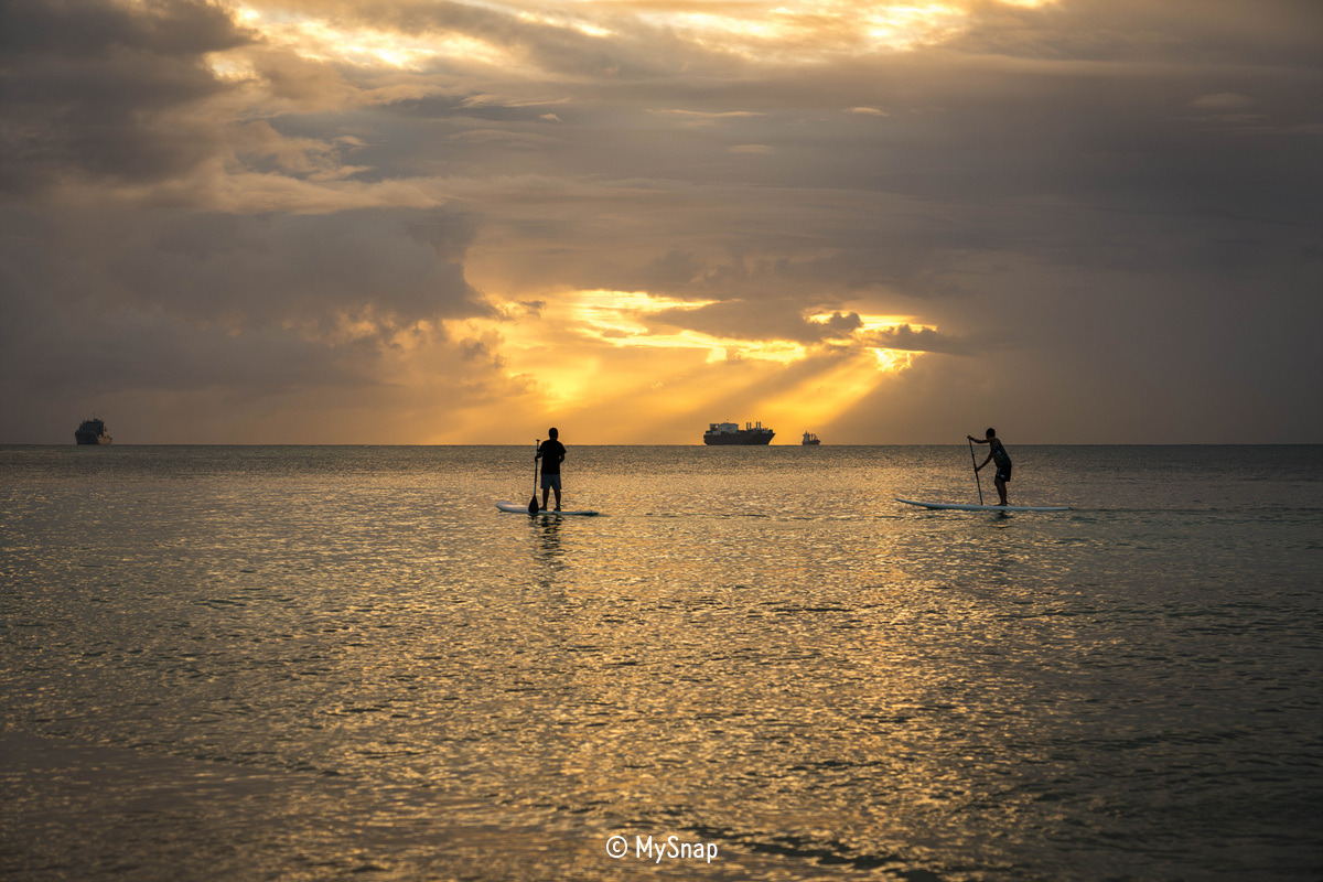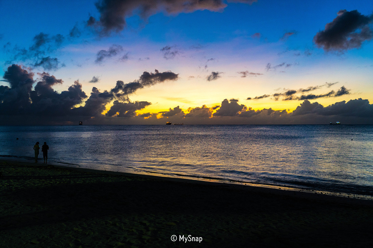 사이판에서 선셋이 가장 예쁘기로 유명한 곳이 마이크로 비치이다. 중심지역인 가라판 쪽에 있는데, 숙소를 하얏트로 선택한 이유도 이것 때문이었다. 폭우가 와서 제대로 못 즐긴 날도 있었지만, 마지막 날의 일몰은 정말 화려하게 예뻐서 유명한 이유를 그제야 깨닫기도 했었다. 사이판에 온다면 꼭 일몰 보는 것을 추천하고 싶다. 렌터카를 예약한 사람이라면, 하얏트에 주차를 하고 호텔 정원을 가로질러서 쉽게 바닷가로 갈 수 있다.