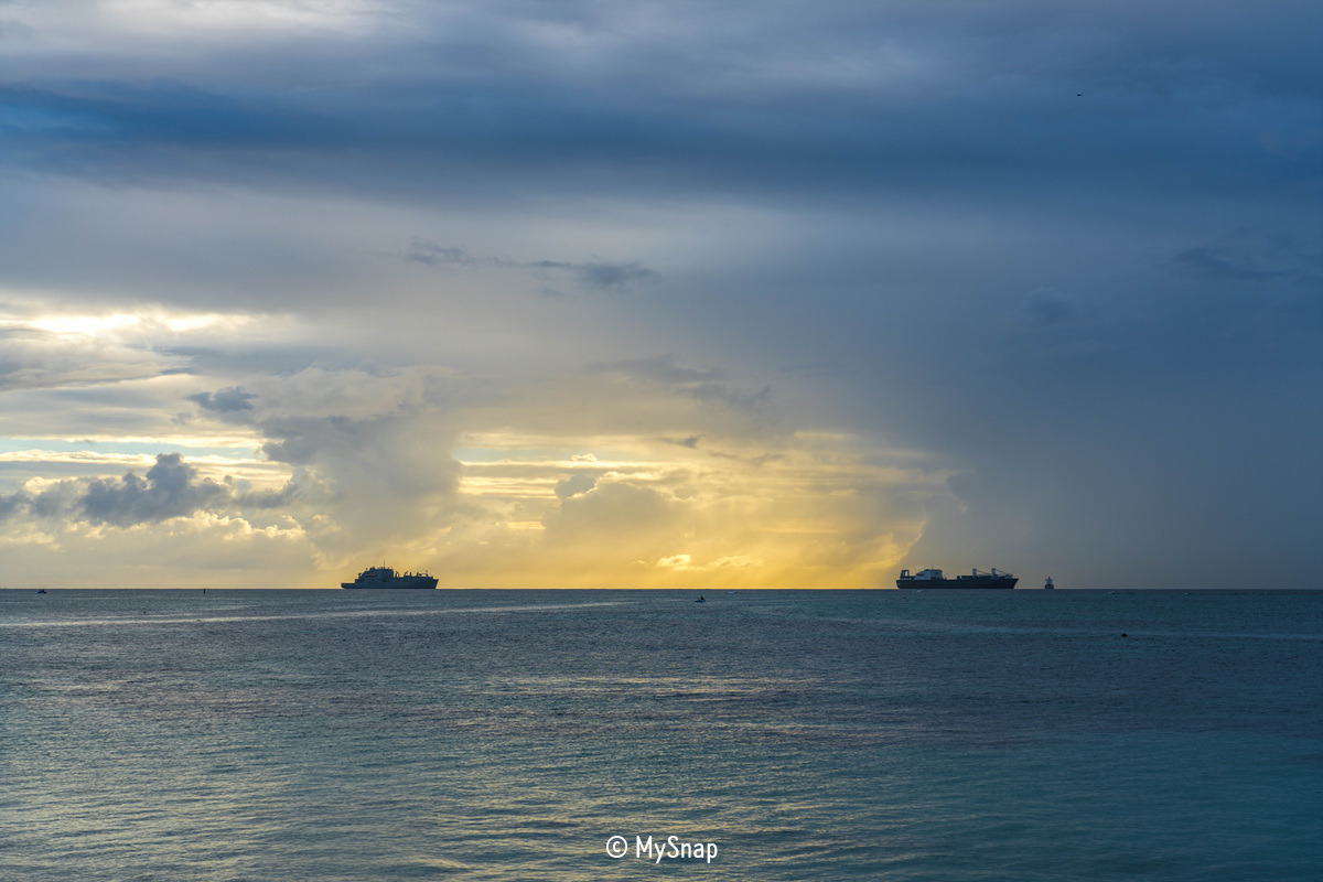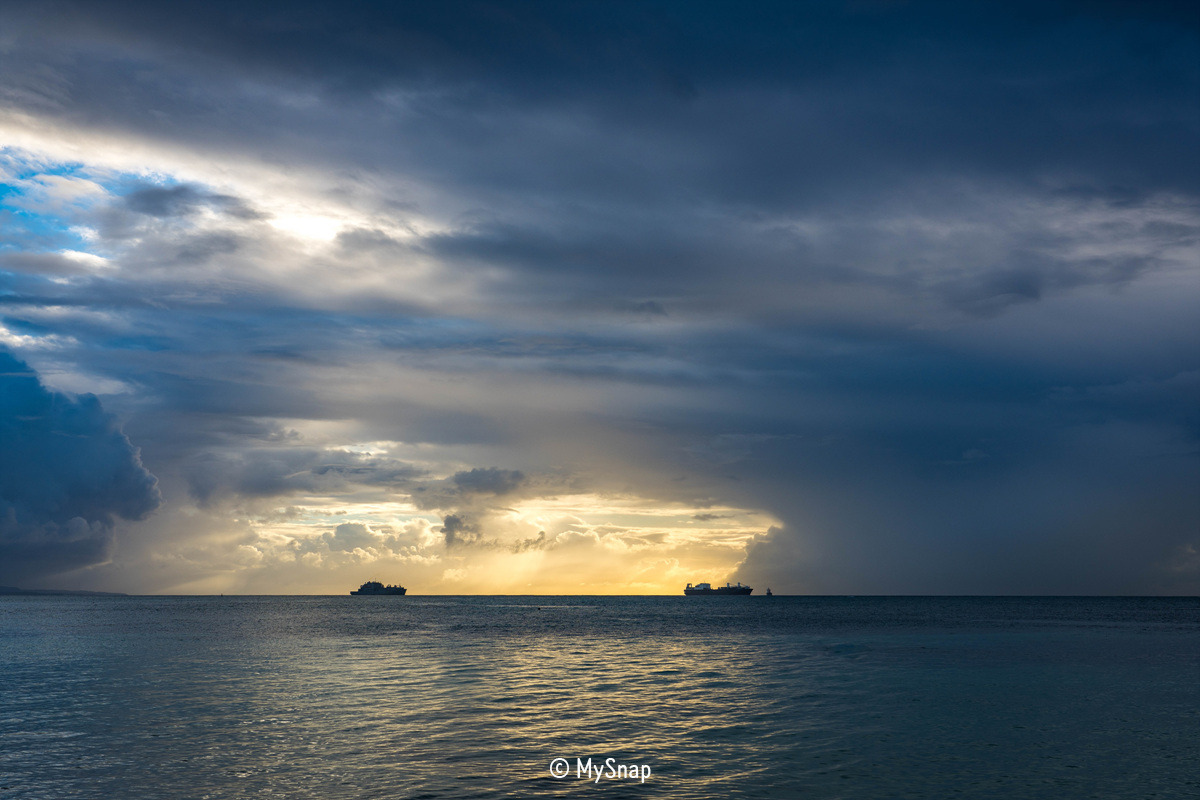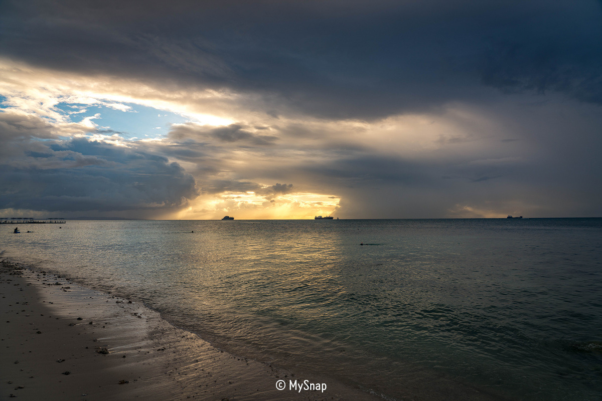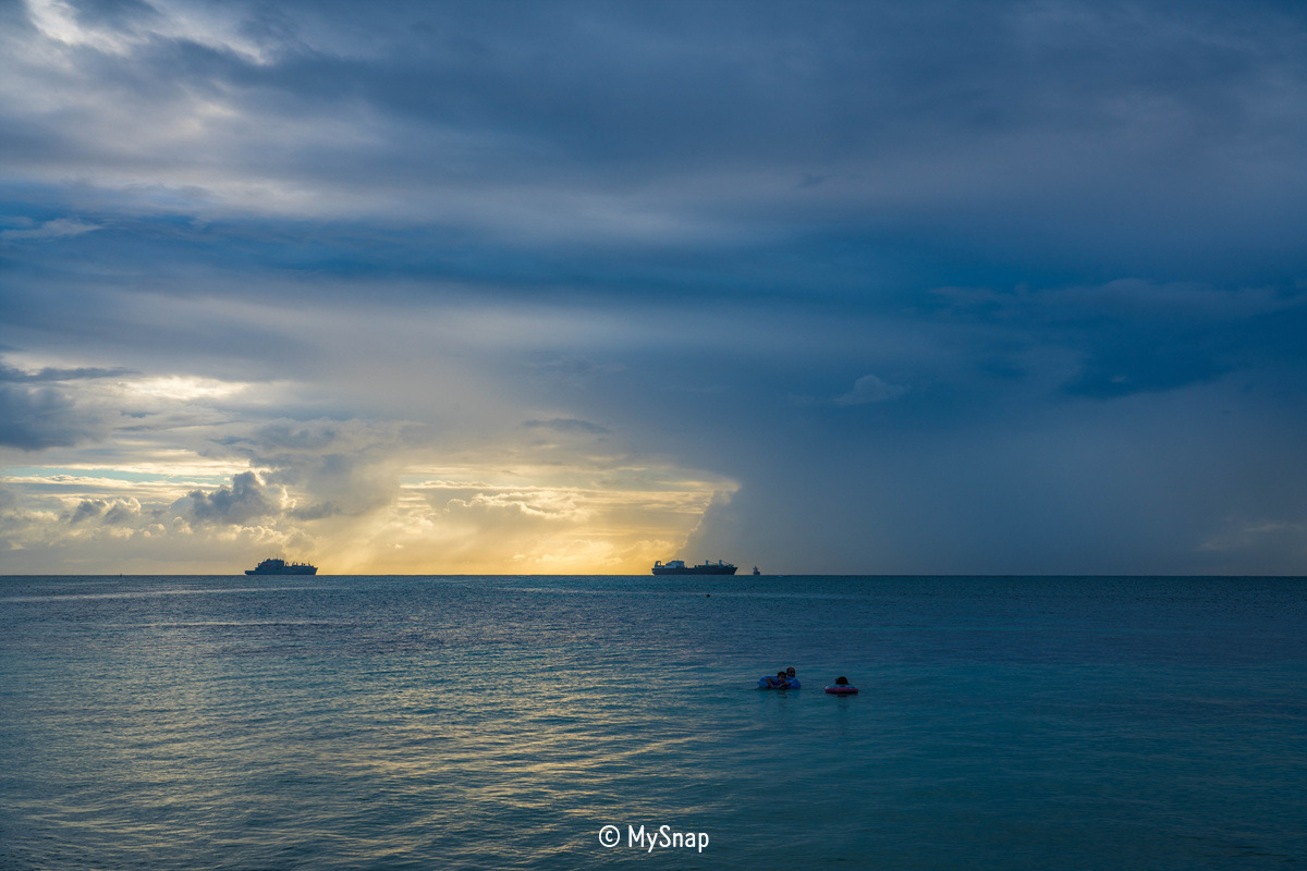 스노클링을 하는데 누가 계속 나의 등을 두드리길래 고개 들어 봤더니, 어마하게 검은 먹구름과 미친 듯이 쏟아지는 폭우 덕분에 무서워서 바로 나오기도 했었다. 5분에서 10분 정도면 다시 폭우가 지나가고 햇볕이 쨍하게 나오는데, 그러면 다시 들어가서 놀기를 몇 번 반복을 했다.