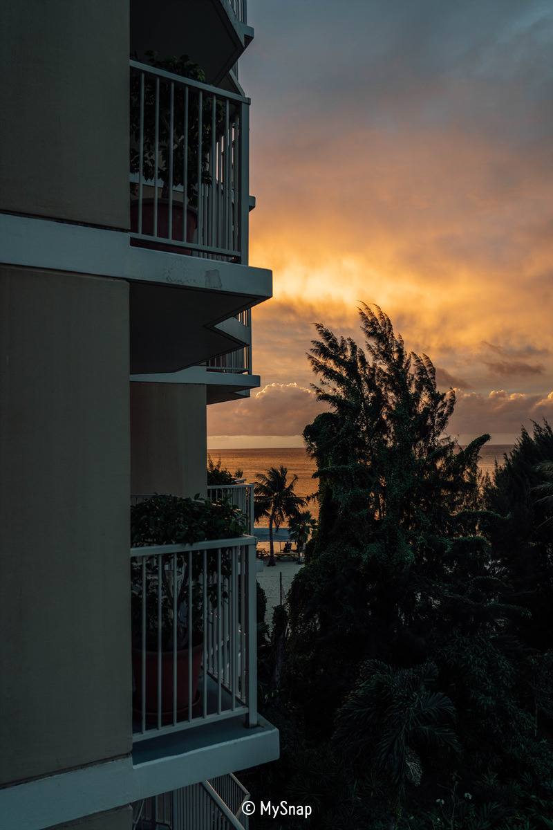 하얏트 호텔 앞에 있는 마이크로 비치는 선셋이 예쁘기로 유명한 곳이다. 그래서 이번에 오션뷰로 예약을 했다. 3박 4일간 호텔에서 바라보는 풍경은 정말 다이내믹하였다. 폭우가 오는 날부터 무지개가 나타난 날까지, 다양한 모습을 볼 수 있었는데, 사이판에서 날씨는 피부가 타들어가듯이 뜨거웠다가, 갑자기 몰려온 먹구름 때문에 폭우가 쏟아지는 등 너무 변화무쌍했기에 즉각 즉각 대응하는 수밖에 없었다.