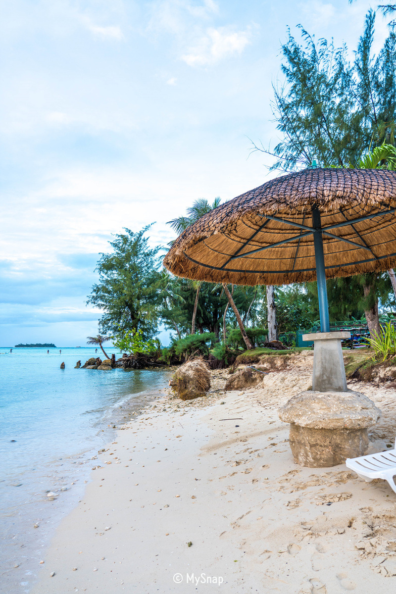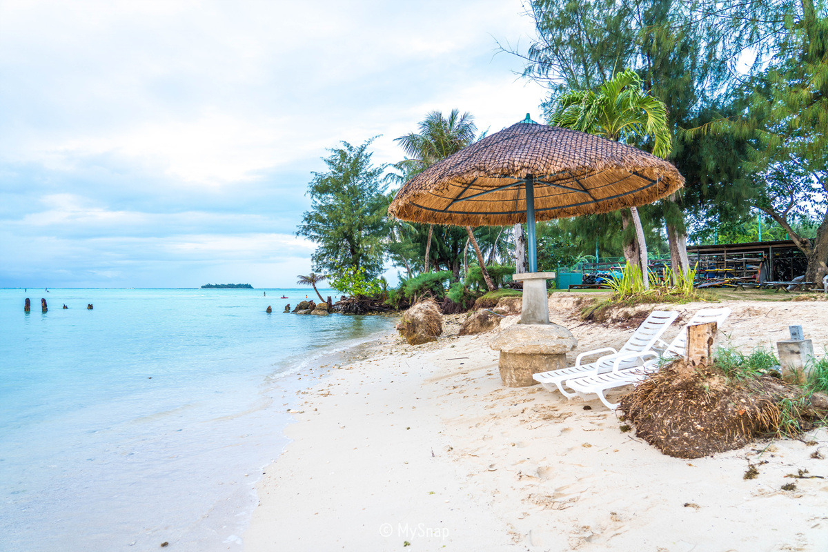 마나가하 섬 내에서 비가 안 오면 상관없지만, 비가 올 때를 대비해서 비치체어와 파라솔을 대여해서 노는 것이 가장 좋은 것 같다. 물론 개인 짐을 보관하기에도 용이하다.