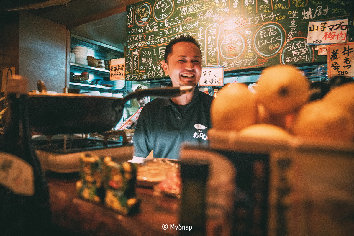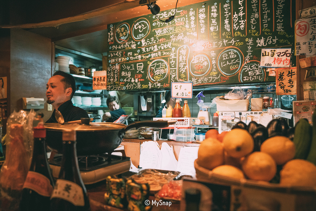 눈에 보이는 가게마다 들어갔지만, 전부 만석이어서 술 한잔 하는 것도 쉽지 않았다. 그러다가 약간 한적해 보이는 작은 선술집이 들어왔다. 관광객들을 배려하지 않는 일본어밖에 없는 곳이었지만, 그냥 무작정 들어갔다. 우렁찬 '이랏샤이마세'를 외치는 점원들의 인사를 들으며 일단 자리에 앉고 봤다. 그리고 메뉴를 달라고 했지만, 메뉴가 따로 없으며 주방에 적힌 일본어들을 가리키며 이것이 메뉴라고 했다.