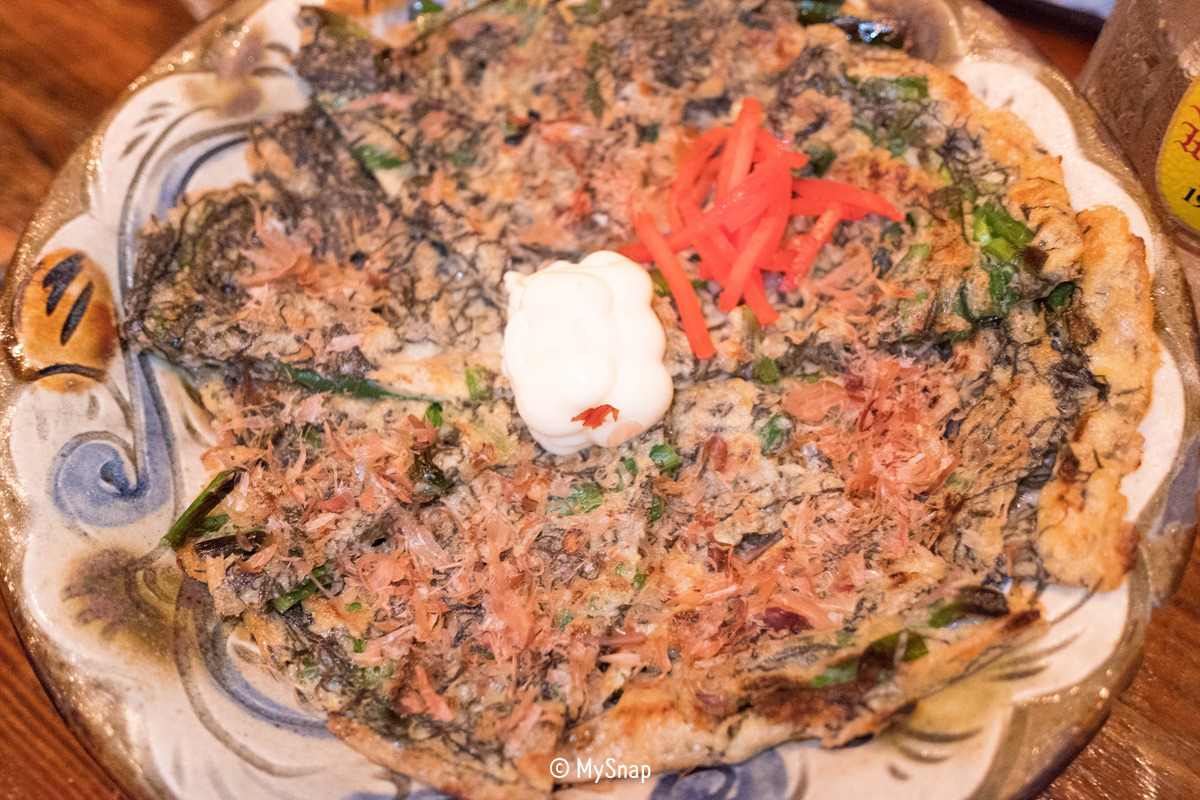 읽을 수가 없었다. 영어 메뉴도 없다고 했다. 당황해하는 내 모습이 재미있다는 듯이 웃는 점원의 모습이 기분 나쁘지는 않았다. 비웃는 것이 아닌 그냥 즐거워서 웃는 듯했기 때문이다. 어차피 읽을 수 없는 메뉴들을 쳐다봐도 의미가 없어서 추천 메뉴를 주문했다. 그랬더니 알겠다는 표정으로 조금씩 접시에 담아주었다. 오코노미야끼가 먹고 싶어서 주문을 했지만 없다고 한다. 대신 비슷한 것이 있다는 말에 오케이 하며 주문을 했는데 우리나라 부추전과 비슷한 것이 나왔다. 사케를 마시고 싶었지만, 흥겨워진 기분 때문에 시원한 하이볼을 주문해서 음식들과 함께 즐겼다.