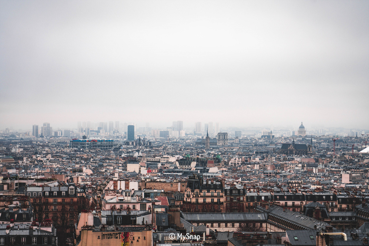 덩치와 안 어울리게 아기자기한 팔찌를 강제로 판매하고 있는 흑인들을 인터넷과 유튜브를 보며 마스터한 회피 스킬을 실전에서 써먹으며 몽마르뜨 언덕으로 올라갔다. 자욱한 안개와 간간히 내리는 비 때문에 파리 시내를 멀리 바라볼 수 없었지만, 가끔씩 연해지는 안개들이 잠시나마 저 멀리 볼 수 있는 기회를 제공해주었다. 비가 와서 그런지 진득하게 뿜어져 나오는 파리의 모습은 마치 오래 사용하여 자연스럽게 낡은 가죽 가방처럼 고풍스러운 맛이 강했다.