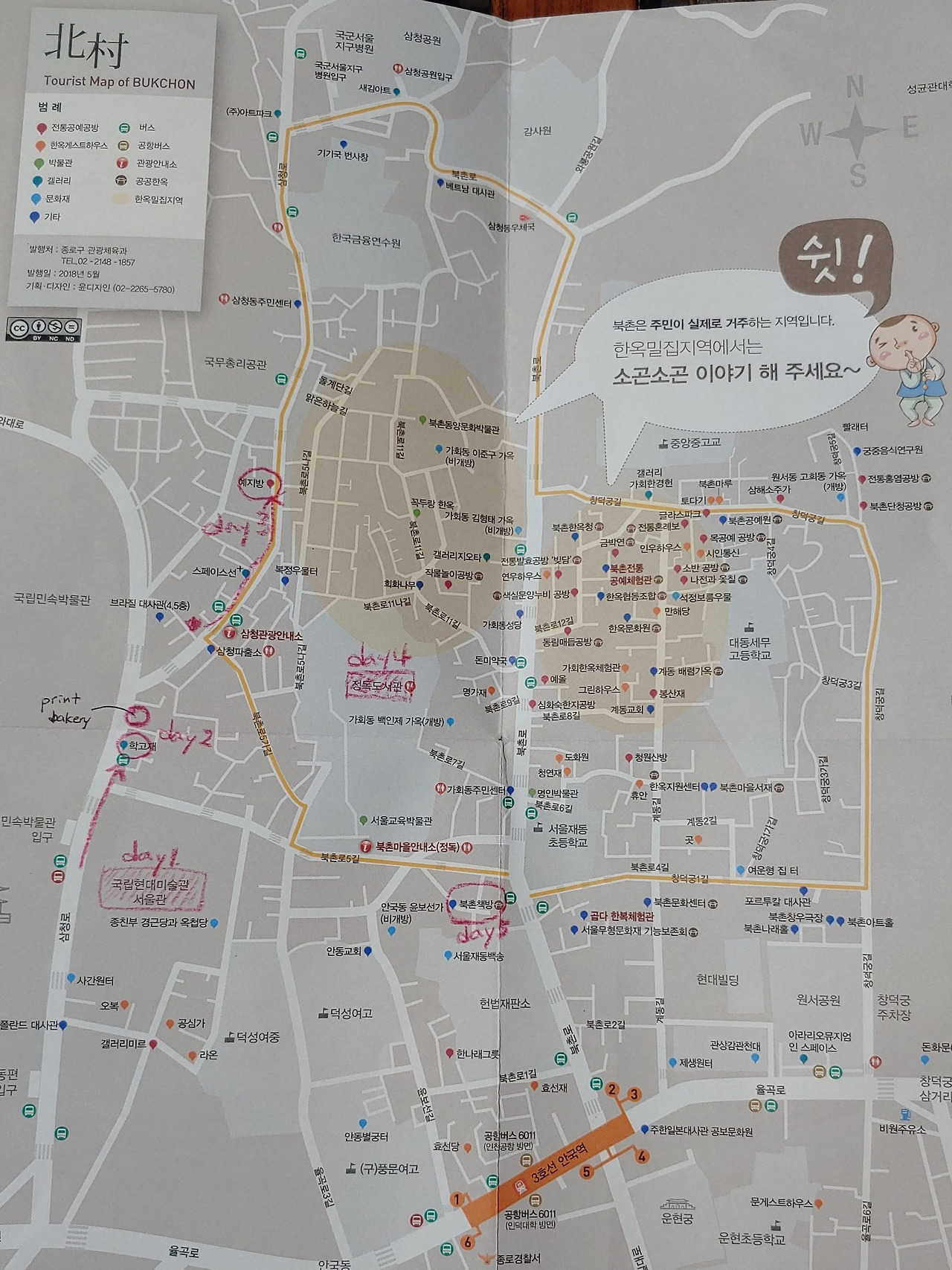 벌써 이 여행을 시작한 지도 꽤나 시간이 지났다. 지도를 펼쳐보면, 내가 지나온 길들이 표시되어 있다. 보고 있자니 마음이 뿌듯하다. 아직 날이 많이 덥지만, 다음에는 꼭 북촌 한옥마을을 돌아봐야겠다 다짐하며 오늘의 여정을 마쳤다.