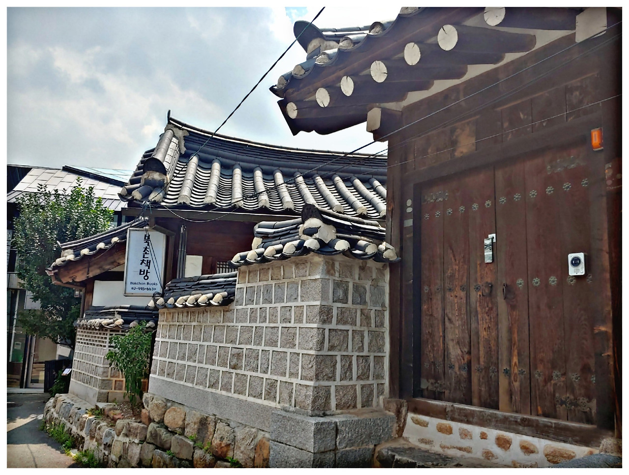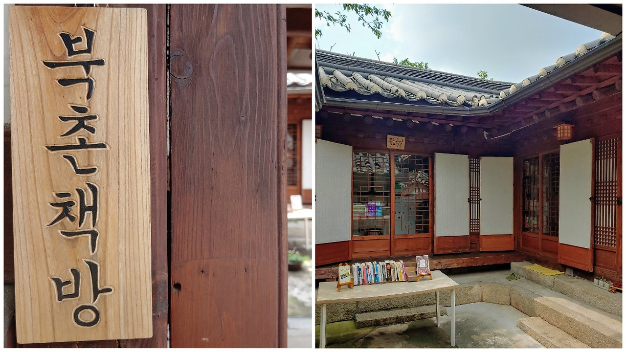 북촌로 5길 끝자락에서 골목으로 살짝 들어가면, 고풍스러운 한옥 처마 밑에 자그마한 간판이 붙어있는 책방을 찾을 수 있다. '북촌책방'이라는 이름에 참 잘 어울리는 모습이다.