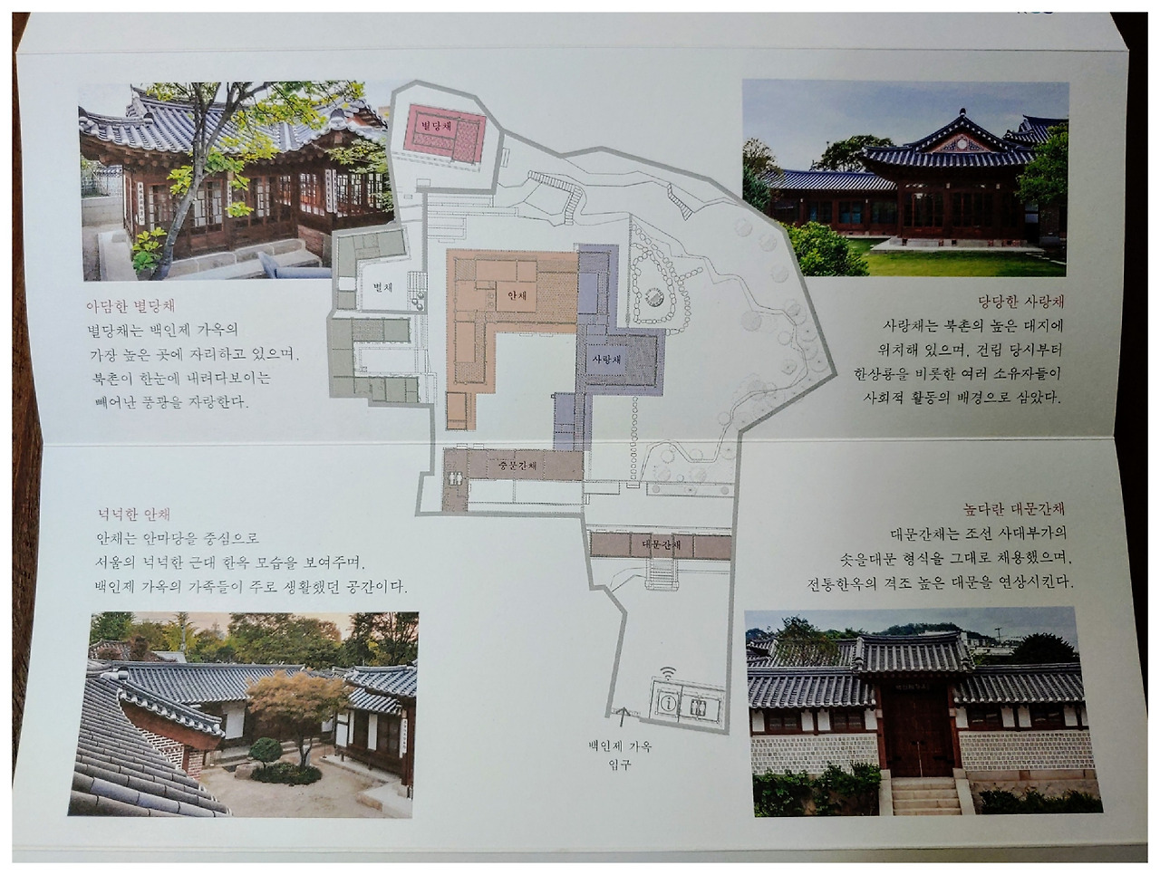백인제 가옥은 대표적인 일제강점기 한옥으로, 근대 한옥의 양식을 잘 보존하고 있다. 무려 2,460제곱미터(744평)의 대지 위에 사랑채를 중심으로 안채와 넓은 정원이 있고, 가장 높은 곳에는 단을 올린 아담한 별당채가 서있다. 전통적인 한옥의 건축양식이 근대적 변화(일본식 복도와 다다미방, 붉은 벽돌과 유리창 등이 차용되었으며, 안채의 일부는 2층으로 건축되었다)를 수용한 형태로, 건축 규모와 역사적 가치 면에서 북촌을 대표하는 건축물로 남아있다.