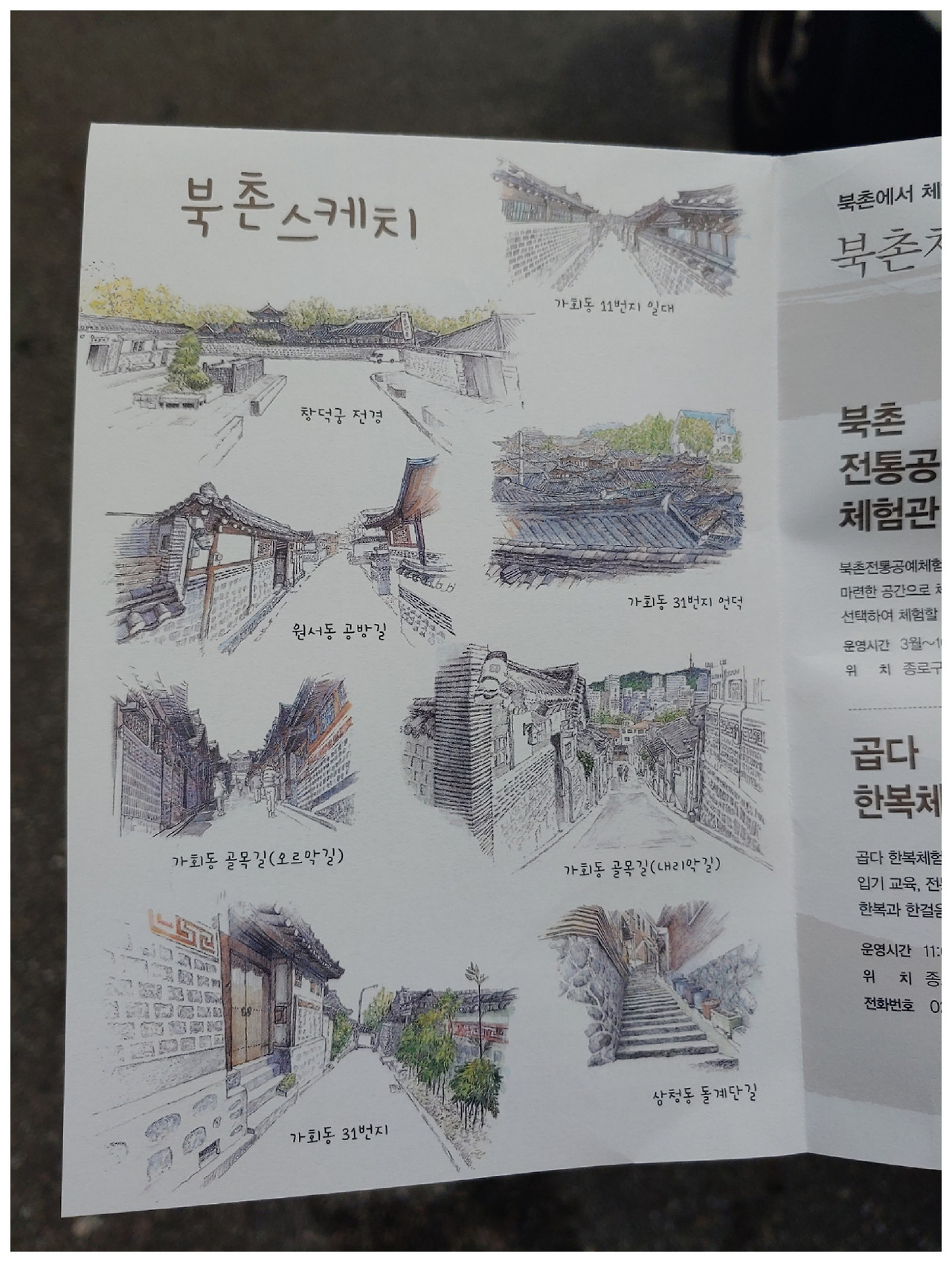 날이 조금 선선해졌다. 이제 주룩주룩 땀이 흐를 일은 없을 것 같아서 본격적으로 한옥마을을 구경하기로 했다. 검색을 해보니, 북촌8경이라고 개발해둔 관광코스가 있는 듯하다. 여행객답게 안내소에서 간단한 안내를 받아보기로 했다.