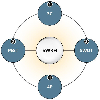 앞서 제시한 비즈니스 주요 프레임 워크(6W3H, 3C, 4P, SWOT, PEST)는 전 세계 누구나 선호하고 반세기 이상 사용된 것이기 때문에 위험부담 없이 활용 가능하다는 장점이 있다. (무려 반세기 이상 전 세계는 같은 모델을 사용했다.) 그러나 기획자라면 유연함을 갖고 자신의 논리를 설득하기 위해 빠르고 정확하게 핵심 사항을 추려 분석하는 능력이 필요하다.