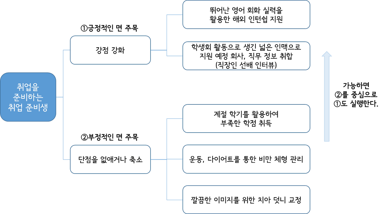 취업을 준비하는 취업 준비생에 대한 카이젠 방식의 접근은 다음과 같다.