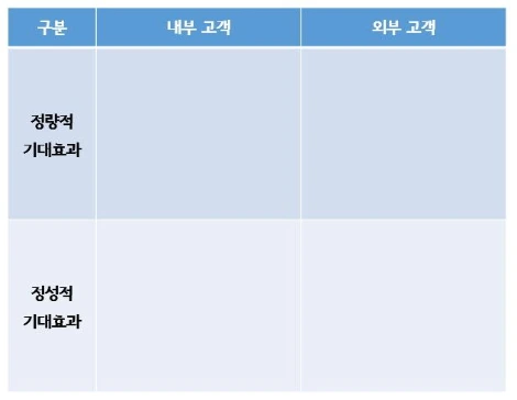 정량적/정성적 표현 이외에도 기대효과의 대상을 내부/외부 고객으로 구분하면