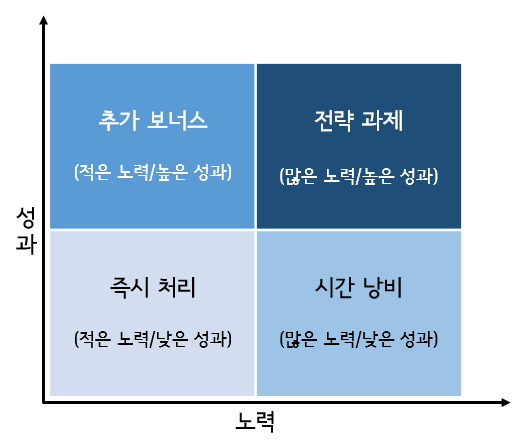 얻을 수 있는 효과나 성과를 Y축으로 설정한다.