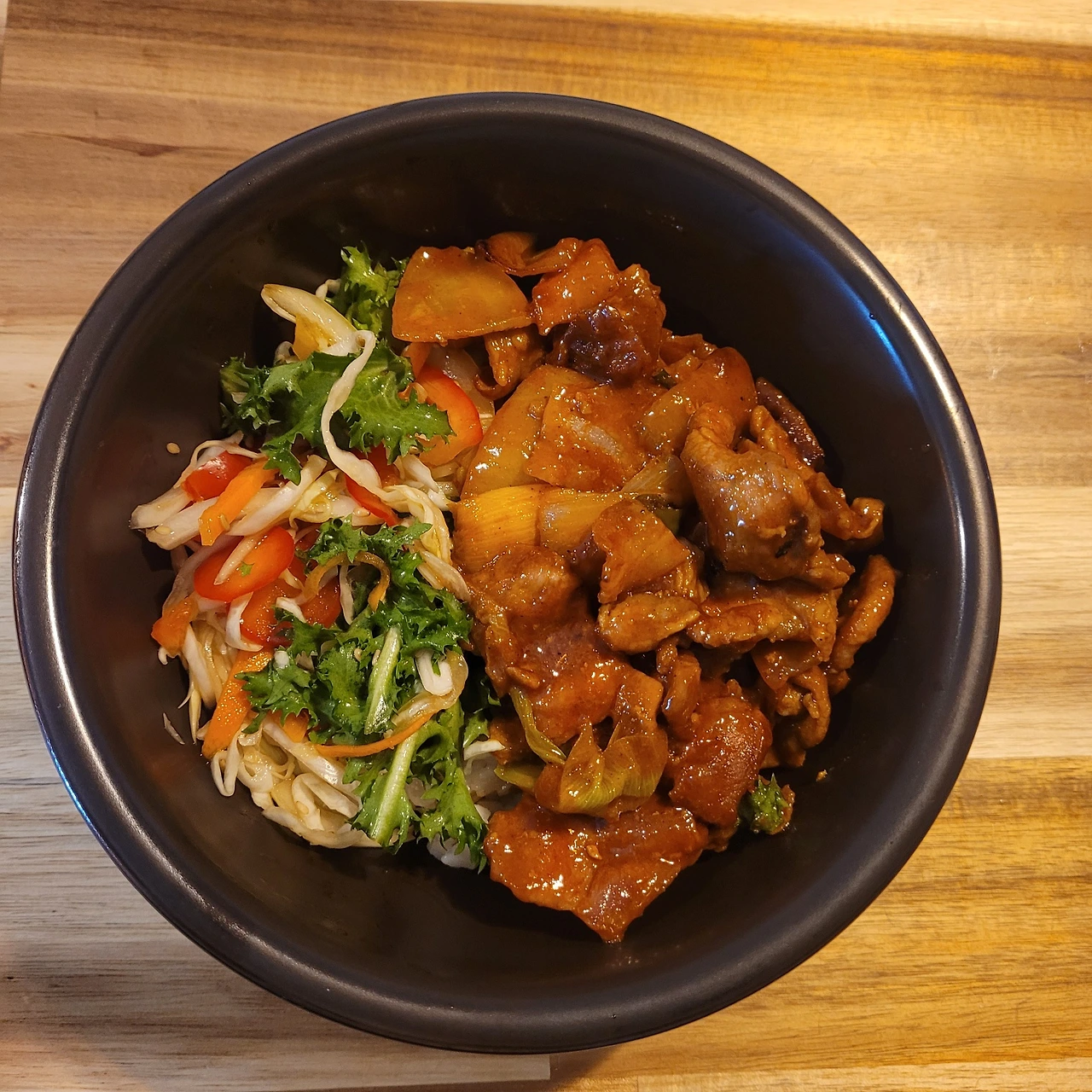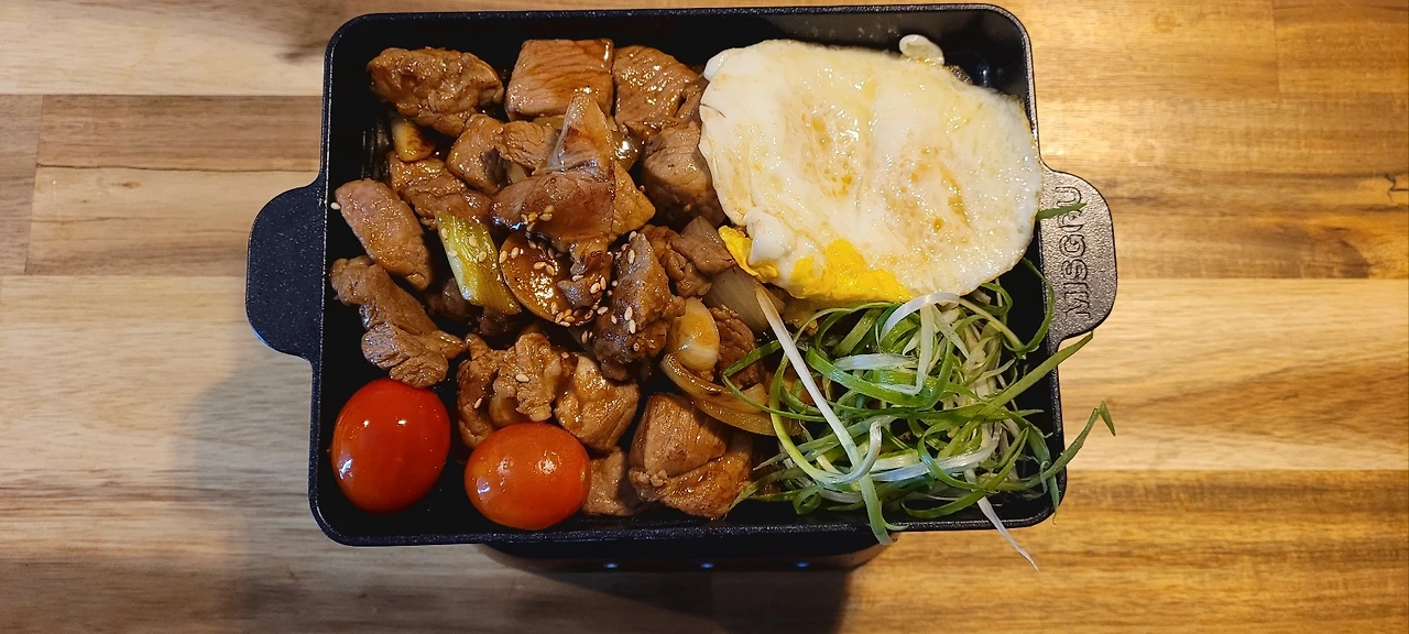 손님이 없을 때 잠시의 찰나, 돼지 앞다리 두루치기를 올려놓은 덮밥은 참 맛있다.