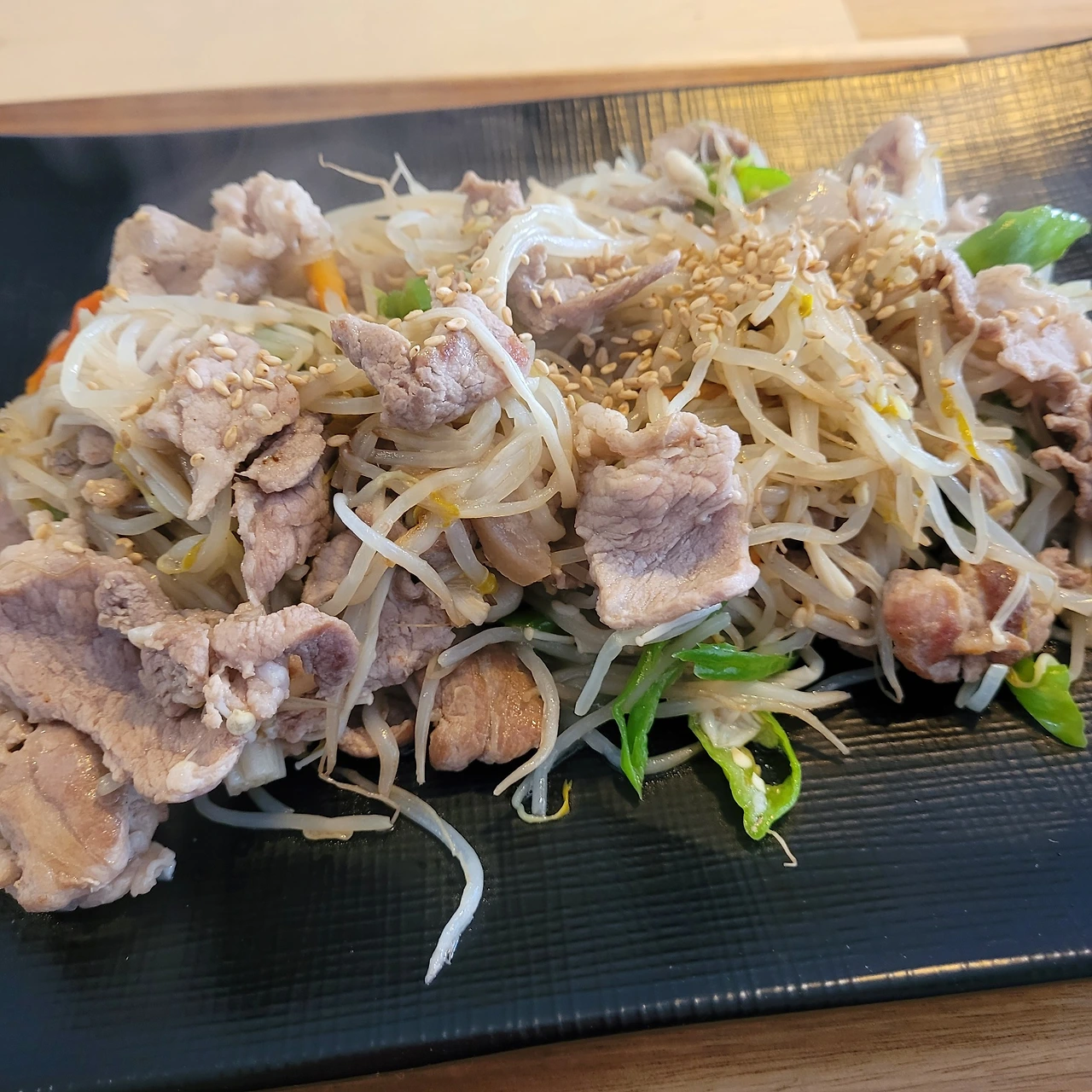 숙주와 함께 굴소스로 양념한 돼지 앞다리