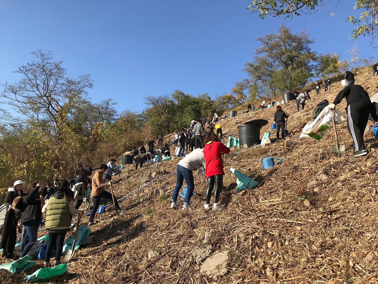 나무를 심는 곳은 위의 사진과 같이 비탈 사면이 주를 이룹니다.