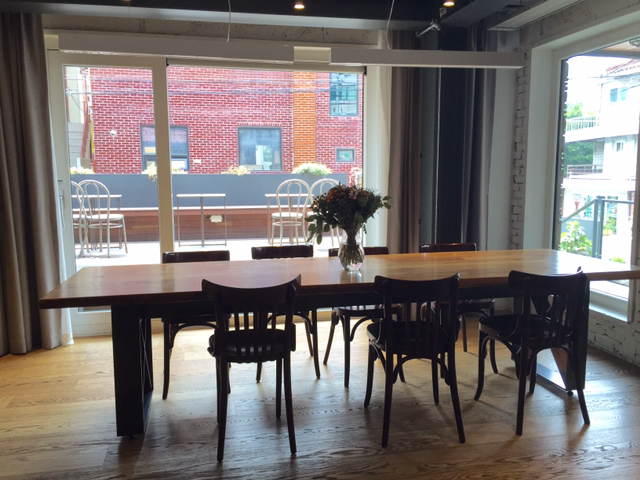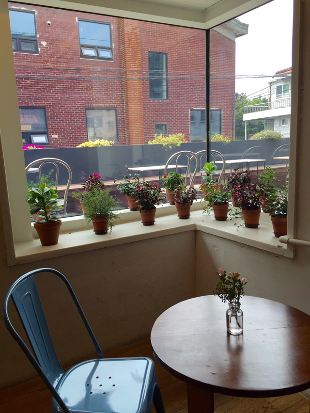 무더위를 피해 동네카페로 피서를 떠나기로 했다. 집에서 가까운 성수. 좁디좁은 골목길 사이 가정주택단지에 자리 잡은 2층 집. 소담한 마당이 있고, 1층과 2층 건물 외관엔 붉은색 꽃이 핀 화분들이 화사한 분위기를 만들어준다. 반지하는 모두 창을 내어 밝은 햇살이 들어온다. 지하로 통하는 문을 열고 들어서니 약간은 어둡지만 서늘한 에어컨 바람에 넉넉한 공간. 재즈 음악이 조용히 흐르고, 이미 자리 잡고 있는 몇몇 좌석에서는 편안한 대화들이 오간다. 긴 테이블 자리에서는 아마도 성수동 근처에서 공간을 개발하려는 분들인지 약간 목소리를 높여 서로 의견을 내면서 목소리가 올라갔다 내려갔다, 카페 공간에 약간의 긴장감을 만들어준다. 옆에 넑은 고전틱한 소파에는 동네 중년 부부가 앉아 커피 한잔을 하면서 우아하게 책을 읽고 있다. 내 옆으로는 편안한 자세로 노트북 하나씩 펼쳐놓거나 책을 읽는 젊은이들, 예쁜 꼬마숙녀를 데리고 온 동네 주부도 자리 잡고 있다. 모두가 편안해 보인다. 음~여름 피서지로 이곳을 선택하길 잘했다. 첫인상이 좋다