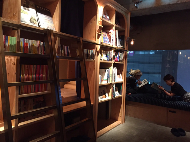 서가에 책은 생각보다 많아 보이진 않았어요. 3천 권 정도가 있다고 하네요. 그렇지만 Shibuya Publishing and Booksellers가 신중하게 고른 책들입니다. 대부분 일본어로 된 책이지만 한쪽 섹션에는 영어로 된 책도 있어요. 여행부터 인테리어, 문학 소설, 잡지부터 반가운 만화까지 취향별로 고를 수 있지요. 서가를 샅샅이 뒤지다 보니 한국 소설책도 2권 정도 찾아냈고, 한국 잡지 매거진 B 시리즈로 발견한 즐거움도 있었어요. 생각해보니 하룻밤 자는 여행자들에게 책이 몇만 권이 있을 필요는 없네요. 서가를 죽 훑어보다가 마음에 드는 책 2-3권을 집어 들고 낯선 도시지만 책을 좋아하는 다른 여행자들과 한 공간에 머물면서 마음 편안한 음악에 책을 읽는 시간을 함께 공유한다는 경험이 주는 즐거움이 컸습니다. 이 공간을 만든 사람이 이렇게 말했더군요. 여행자들에게 푹신푹신한 침대를 제공해주진 않지만, 새벽 2시 책을 읽다가 눈꺼풀이 무거워져서 잠이 드는 밤을 경험할 수 있게 해주고 싶다고요.