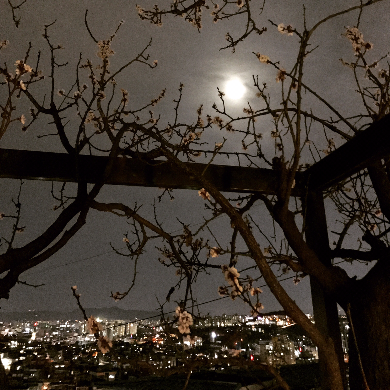 야외정원에서 서울 전경을 바라보면 가슴이 탁 트입니다. 이 집의 매력이죠. 컴컴한 밤. 왼쪽으로는 조명이 황금빛 길을 만들며 구불구불 이어지는 성곽길이 보입니다. 저 멀리 용문산에 위치한 군부대 즈음에서는 횃불처럼 환한 빛이 뿜어져 나옵니다. 정면으로는 낮은 동네 집들의 옥상을 거쳐 고층빌딩 숲을 지나면 강 건너 뭉툭하니 우뚝 선 롯데월드 건물이 보입니다. 오른쪽으로 시선을 돌리면 남산타워가 언덕 위 집들에 가려 살짝 보입니다. 어두컴컴한 밤하늘에 뜬 둥근달은 흩뿌려진 구름이 뿌옇게 가리려고 하네요. 어릴 적 이불을 뒤집어쓰고 봤던 TV [전설의 고향]처럼, 평상시와 다른 무언가가 벌어질 듯한 분위기입니다. 그러고 보면, 일상을 탈출한 이 날의 분위기에 딱 맞는 거지요.