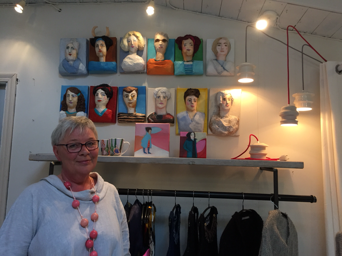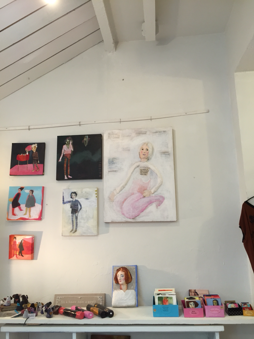 레이캬비크 메인 거리에 자리 잡은 소담한 아티스트 부띠크. 닥종이 비슷한 종이를 붙여서 인물을 표현하는 작품을 만드는 아티스트다. 색감이 따뜻하고 통실통실하고, 때로는 초현실적인 작품들이 있는데, 어느 작품이건 사람이 등장한다. 그런데 작품 속 인물들이 참 닮았다. 마침 샵에 있는 주인이 아티스트 본인이라 이야기를 나눴더니, 주로 모델은 본인과 여동생이고, 때때로 가족들의 모습에서 영감을 얻는다고 한다. 세상에서 가장 가까운 자매는 둘 다 예술가. 같이 공동작업을 하는 경우도 많은데, 자기들이 만들어가는 작품 세상에서는 모든 사람들이 사랑하는 사람, 가족과 함께 하는 따뜻한 감성의 세상을 보여주고 싶다고 한다. 그림 작품 외에도 털실로 만든 포근한 의상도 만들어 팔고 있어, 여성 여행자라면 한 번 들려보기를 추천한다.