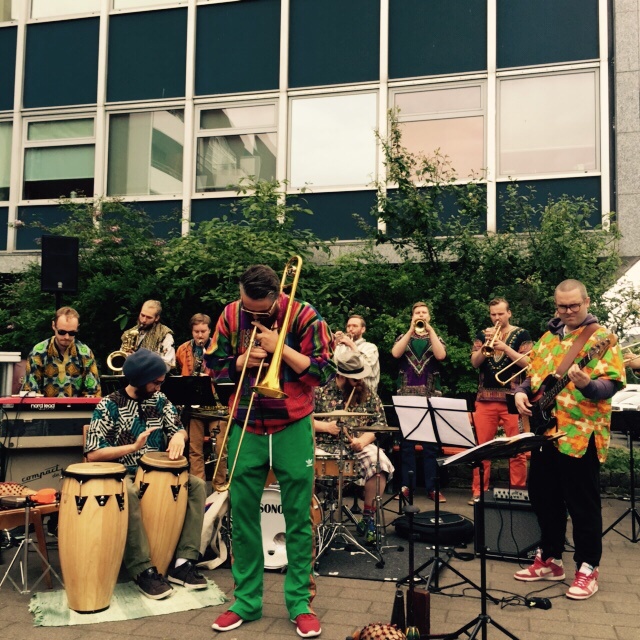 결혼식이 끝난 교회 근처 작은 광장에는 브라질 삼바 공연 준비가 한창이다. 칼라풀한 복장의 삼바밴드는 마치 결혼식 피로연에 온듯한 분위기를 만들어낸다. 온동네 사람들이 풍선과 빨주노초파남보 색종이로 장식된 간이부스에서 음식과 와인, 맥주를 들고 밴드가 만들어내는 흥겨움에 취해버린다. 북적북적 이는 사람들. 북적거림을 하나의 악기 소리로 흡수해버리는 리드 퍼커션의 호루라기와 드럼 소리, 폐가 터져라 힘껏 불어 제치는 트럼펫과 색소폰 연주자들... 어깨가 들썩거리는 흥겨운 피크닠에는 역시 빅밴드가 정답이다.