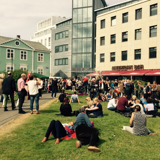 주말 특히 시청 근처 공원에 밀집된 바들은 하루 종일 음악공연으로 흥겨운 거리를 만들어내는 주인공들이다. 레이캬비크 주민들 대부분이 오늘을 다 여기로 나온 것 같다. 노천카페에서 콜라에 햄버거 하나씩 받아서 옆 잔디밭에 철퍼덕 앉거나 드러눕고 음악소리를 듣고 있으면 그냥 즐겁다. 가끔 짓궂은 복장을 한 연기자들이 흥을 돋우는데, 오늘은 흑인처럼 얼굴을 까맣게 분칠하고 입술을 큼지막하고 두툼하게 새빨간 립스틱을 바르고, 가슴과 엉덩이에 패딩을 넣어서 과장되게 풍만한 복장을 한 연기자가 객석을 돌면서 함께 춤을 추고 사진을 찍고 웃음 바이러스를 전파하다. 그 시각 시내에 위치한 소셜 호스텔 Loft Hostel에서는 벼룩시장이 열린다. 물가가 턱없이 비싼 아이슬란드에 와서 쇼핑을 할 엄두도 내지 못하다가, 벼룩시장에서 이것저것 마음껏 입어보고 블루종을 한벌 1만 원에 득템 했다. 아이슬란드 물가로는 말도 안 되는 금액, 서울에서도 살 수 없는 금액에 아이슬란드에 여행 와서 처음이자 마지막 쇼핑을 하고 흐뭇한 마음으로 다시 피크닉 장소를 옮겨본다.