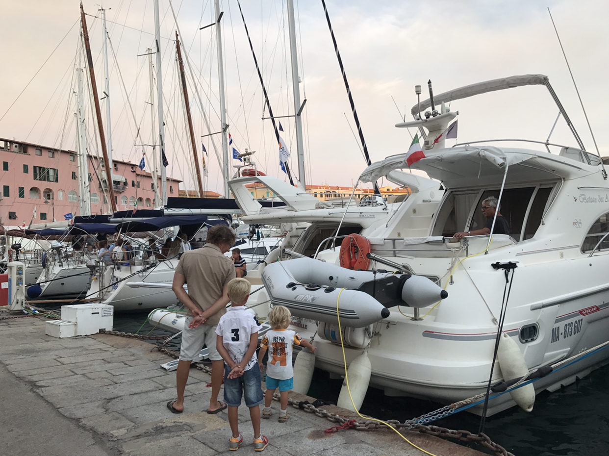 뜨거운 태양 아래 바다에서 선탠을 즐기던 사람들은 해가 지면 구시가지 포르토 메디쎄오(Porto Mediceo) 요트 선착장으로 모인다. 사람들이 기웃거리며 구경하는 럭셔리 요트는 ‘일반인 출입금지’ 푯말을 걸고, 유니폼을 입은 승무원들이 물청소에 열심이다. 개인 요트에선 수영복을 내걸고 선미 테이블에 대여섯 명이 앉아 달빛 아래 맥주를 한잔씩 걸친다. 사람들 시선이 부담스러운 노부부는 가림막을 설치하고 작은 TV로 뉴스를 시청하며 배 위에서 와인과 간단한 식사를 한다. 맞은편에는 바캉스 패션을 입으라고 유혹하는 작은 상점들이 저녁 산책길에 나선 사람들을 유혹한다.