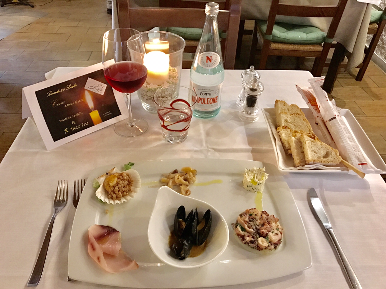구시가지 중심 카보 광장(Piazza Cavour)은 해산물 요리와 피자를 즐기는 사람들이 와인잔 부딪히는 소리가 가득하다. 광장 돌계단을 걸어 언덕에서 오르니 바다를 바라보는 풍광이 멋지다. 언덕 위 리도 Lido 레스토랑 앞 [Jazz Night] 포스터를 보고 다음날 저녁을 예약한다. 다시 찾은 레스토랑. 웨이터가 내 이름이 프린팅 되어 있는 예약석으로 안내한다. XJazzTrio 공연을 정면에서 보며 식사하는 명당이다. 촛불 아래 우아하게 자리 잡고 코스 요리를 주문한다. 엘바섬은 원산지증명지역(D.O.C)일 정도로 와인 재배지로도 유명하다. 차가운 로제 와인 ‘비노로쏘’가 드라이하면서도 풍미가 뛰어나 토스카나 정찬 코스의 채소 요리(Le Verdure)와 어울린다. 섬에서 갓 잡아 올린 생선요리에 채소를 더해 비노로쏘를 하면서 저녁을 했다. 그런데 분위기에 어울리지 않게, 웨이트리스가 실수로 물병을 깨서 한바탕 난리가 났다. 색소폰 연주자는 출입구에 너무 바짝 자리 잡은 터에 열정적으로 연주하다가 보면 악기가 계속 문에 부딪히고, 보컬은 안타깝게도 제 실력(?)을 발휘하지 못하고 총체적 난국이다. 블랙코미디 같은 상황에 레스토랑의 손님들은 실소를 터트리며 결국 음악보다는 맛있는 음식에 더 집중한다. ‘살짝 아쉽지만 그래도 여행지니까’하고 넘어간다.