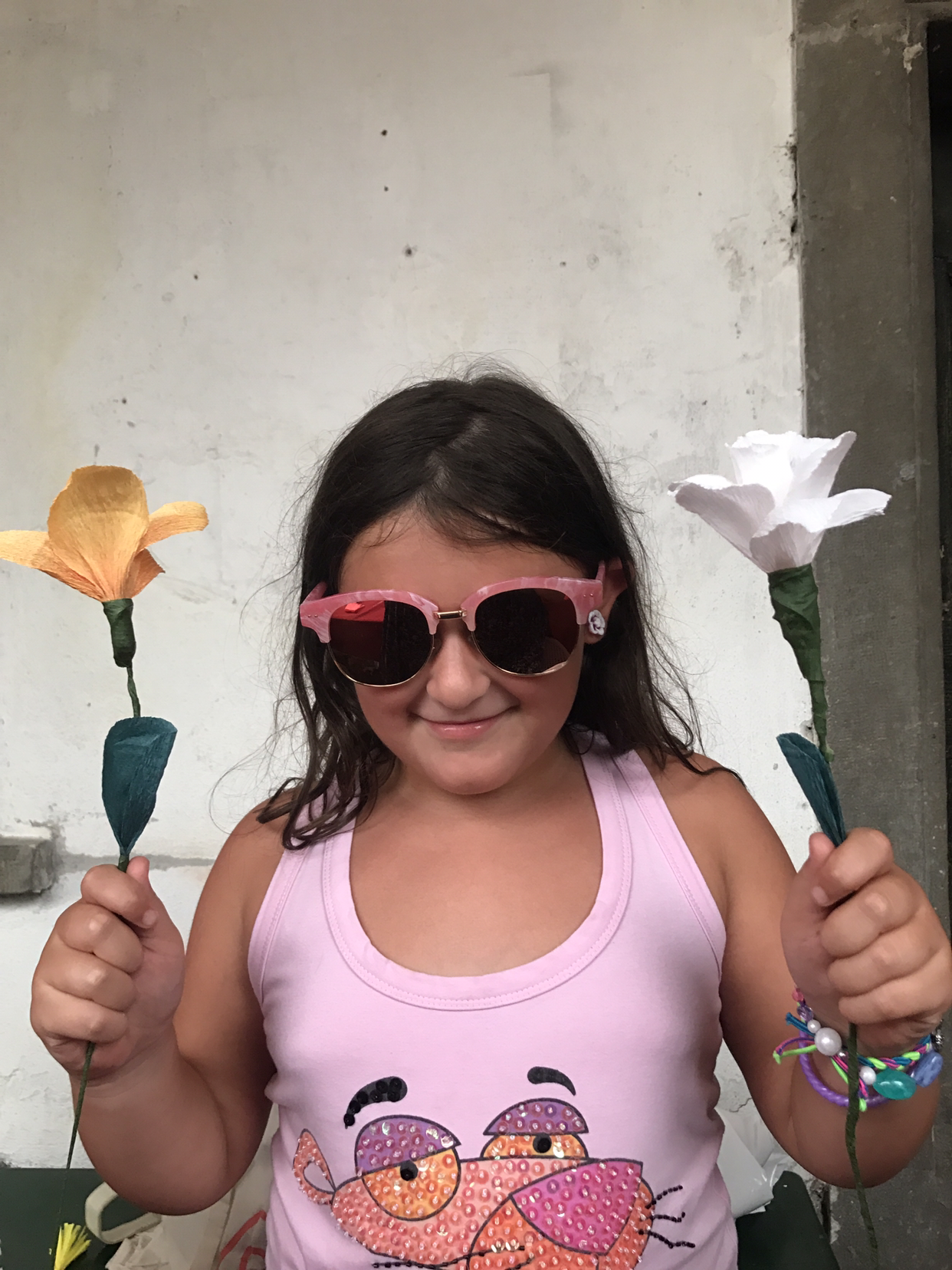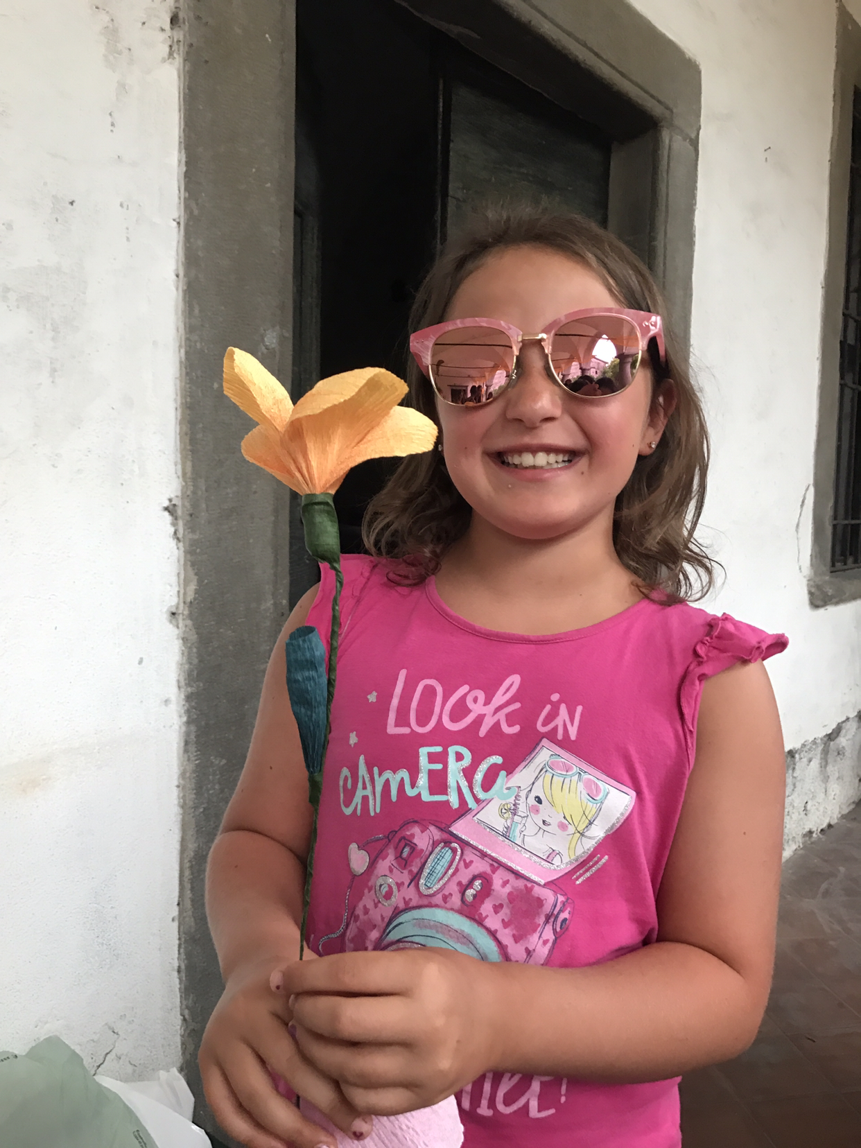 보트를 타고 옆 마을로 가 동네 아주머니들에게 그물 엮는 법, 종이로 꽃을 만드는 법을 배워본다. 어촌마을 주민들은 예전엔 그물을 만들어 수선하고, 종이꽃을 팔아 가계에 보탰다. 뜨개질을 하듯 여러 색을 섞어 그물을 만들어 숄처럼 어깨에 둘러본다. 오늘 밤 패션에 맞춤형 숄더다. 종이꽃 만드는 모습이 어설퍼 보였는지, 배가 볼록 나온 동네 꼬마들이 종이 돌돌 마는 걸 도와주고, 선글라스를 빌려 쓰면서 옆에서 떠날 줄 모른다. 덕분에 쉬운 이탈리아어도 배우고 즐거운 시간을 보낸다.