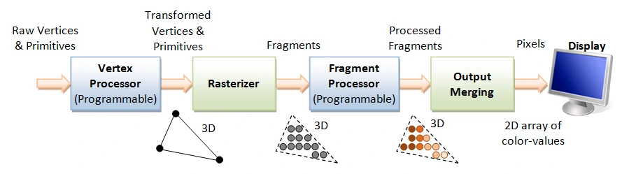 Vertex Shader를 통해 변환된 데이터를 Fragment Shader에서 처리 가능한 정보로 바꿔주는 과정을 Rasterization이라고 한다. 이런 처리를 하는 것을 Rasterizer라고 한다.