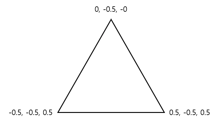 -0.5f, -0.5f, 0.5f // 오른쪽 아래 vertex