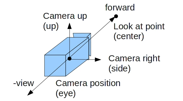up vector가 (0,1,0)이면 y축 방향으로 카메라의 위쪽이 위를 향하여 위와 같은 모습이 된다.