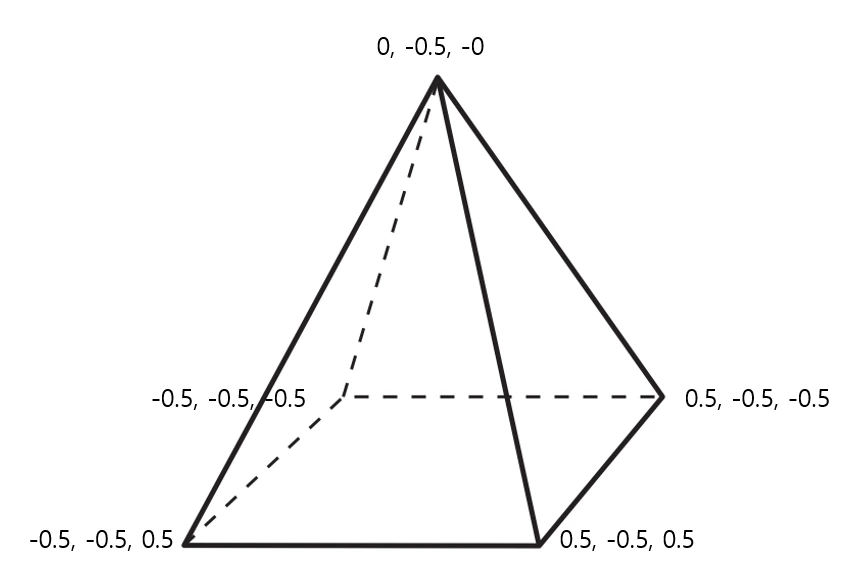 사각뿔을 그리기 위한 좌표를 다음과 같다.