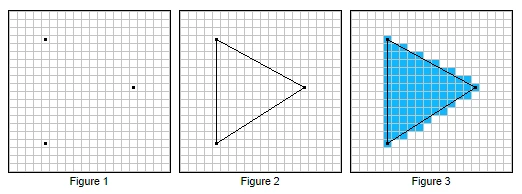 삼각형을 그릴 때 각 점을 넣는 순서가 반시계 방향인 것은 동일하다. 주의할 점은 외부(바깥쪽)에서 바라보는 시점으로 반시계 방향이다. 정면이 아니다.