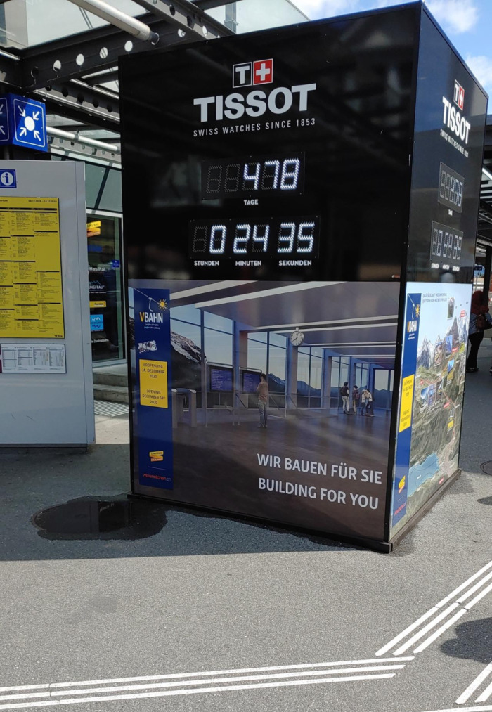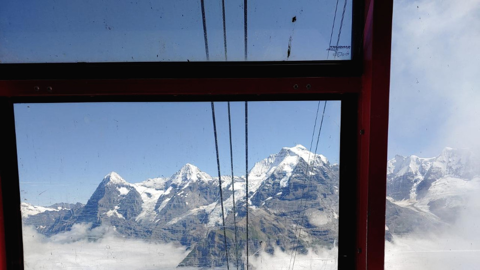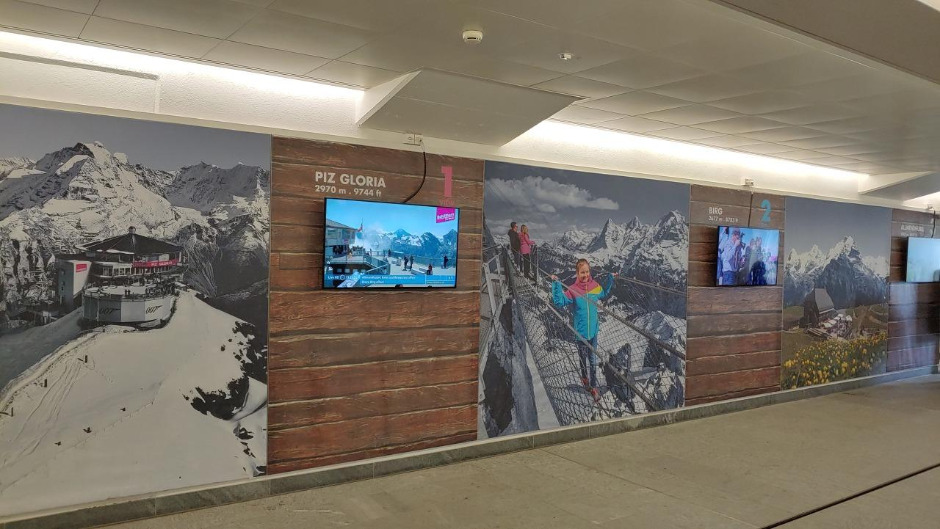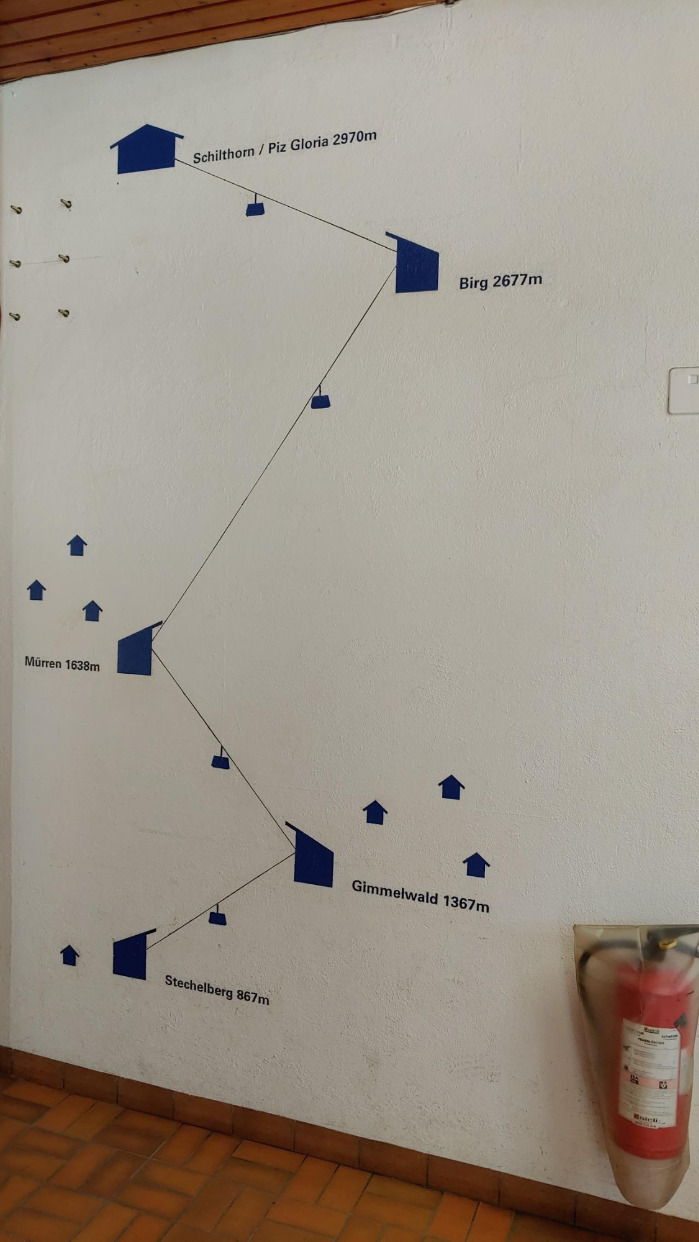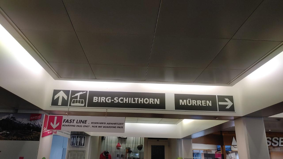 처음 도착지에 내리면 비르그-쉴트호른으로 가는 케이블카와 뮤렌으로 가는 케이블카로 나뉜다. 쉴트호른의 현재 날씨를 실시간으로 보여주는 모니터도 있으니 참고하면 된다.