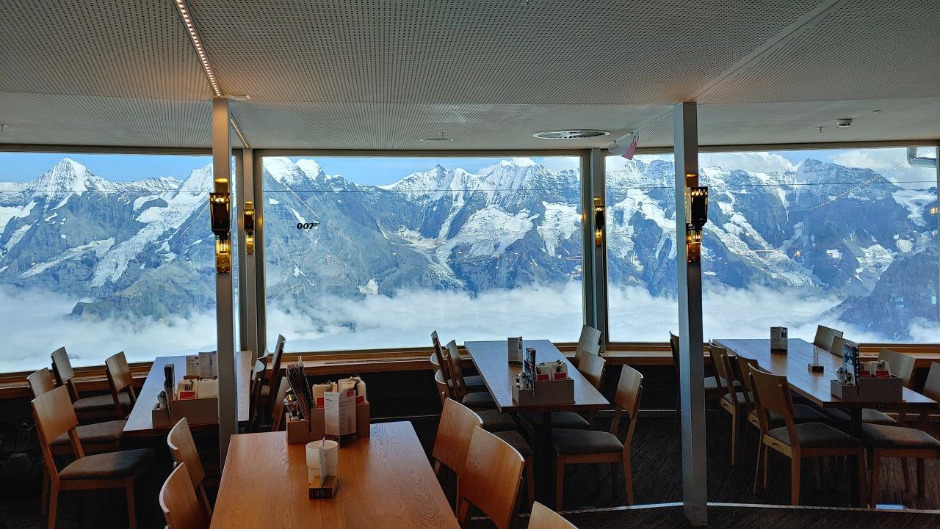 Piz Gloria는 외곽이 모두 유리로 되어 있고 건물 자체가 360도 회전하면서 파노라마로 풍경을 감상하면서 식사를 할 수 있다. 스위스의 물가를 생각하면 쉴트호른에 자리 잡은 데다가 회전까지 하는 이 레스토랑이 매우 비쌀 것이라고 생각했다. 하지만 생각보다 저렴했다. 어쩌면 이미 스위스 물가의 매서운 맛을 봐서 그런지도 모르겠다. 보통 이런 관광지는 같은 음식이라도 더 비싸기 마련인데 의외였다.