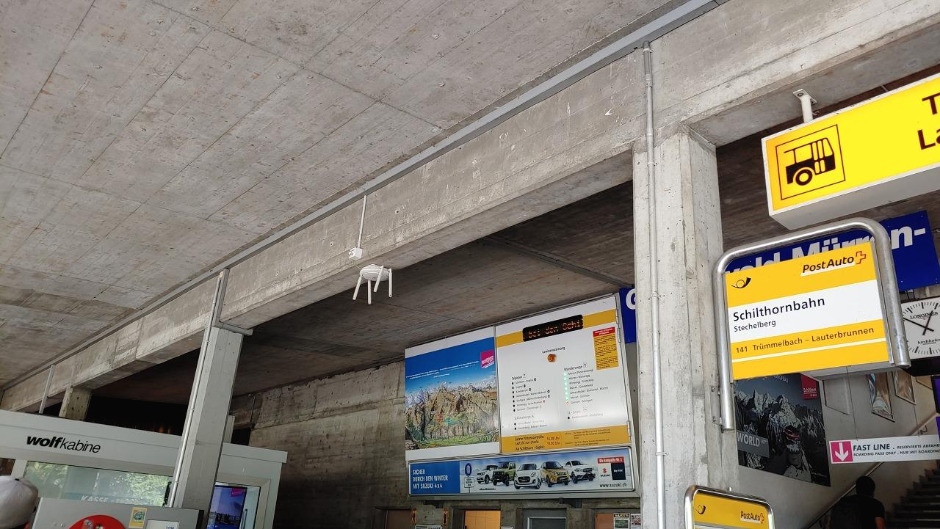 버스에서 내리면 위 사진의 좌측에 보이는 매표소에서 스위스 패스를 보여주고 케이블카 티켓을 발권받아야 한다. 그 후에 옆의 계단을 올라가면 된다.