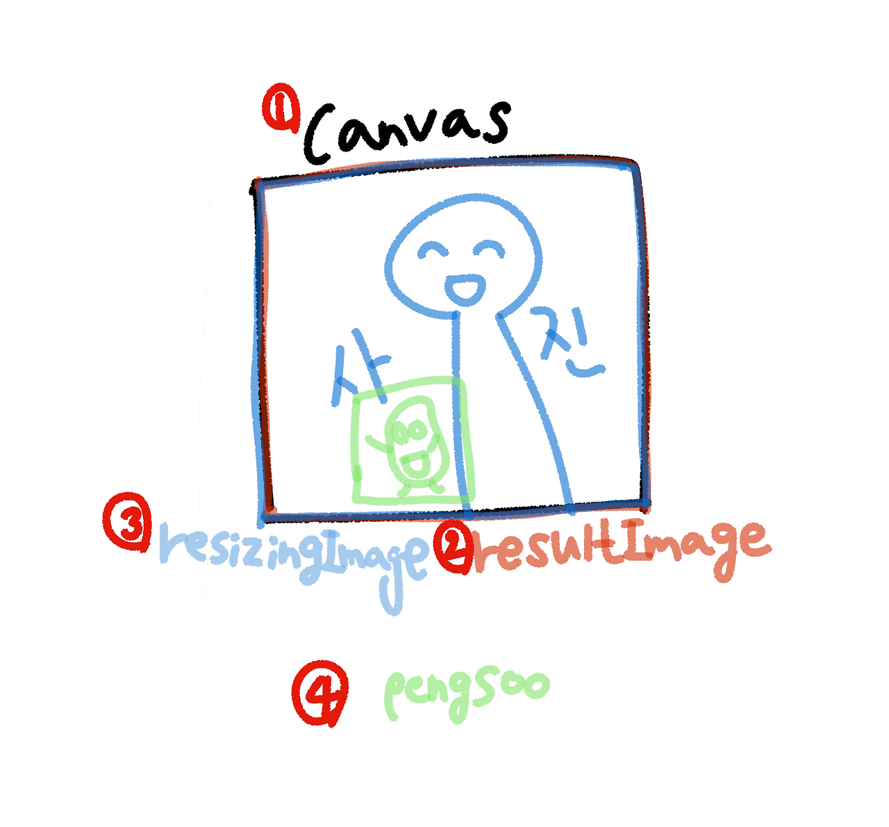 여기까지 진행하면 합성된 이미지가 되는 것이다. 말로만 들으면 와 닿지 않을 수 있어서 다음과 같이 그림을 그려봤다.