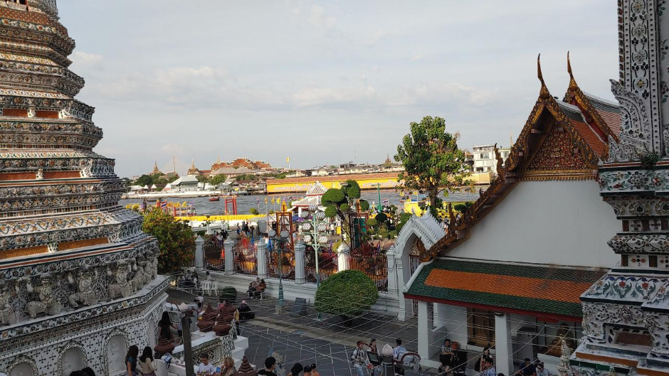 조금 높이 올라가면 가까이 강이 보인다. 저 강으로 이동해서 배를 탔다. 여러 군데 정박하는데 우리가 내릴 곳은 카오산 로드였다.