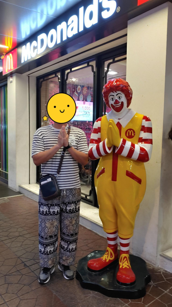 카오산 로드의 명물인 맥도널드 앞에서 한 컷을 남기고 거리를 좀 걷다가 돌아왔다. 다시 생각해보니 볼거리가 많이 없어서 하다 하다 맥도널드가 유명한 스폿이 된 건가 싶기도 하다.